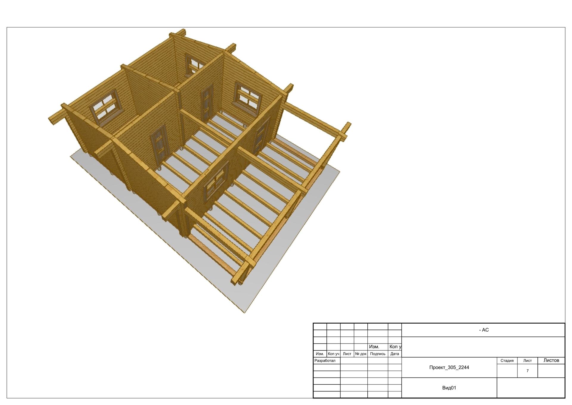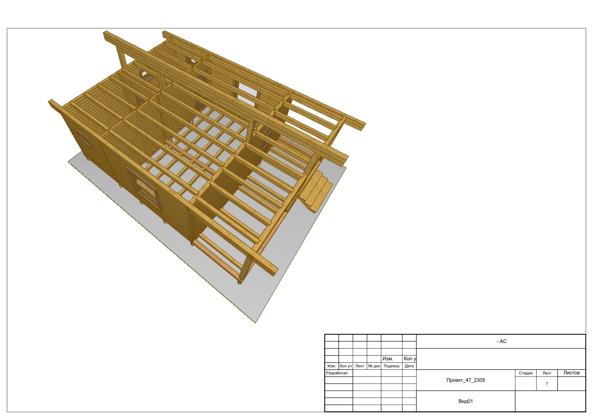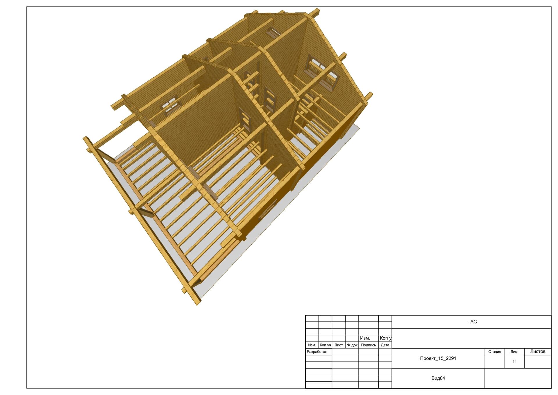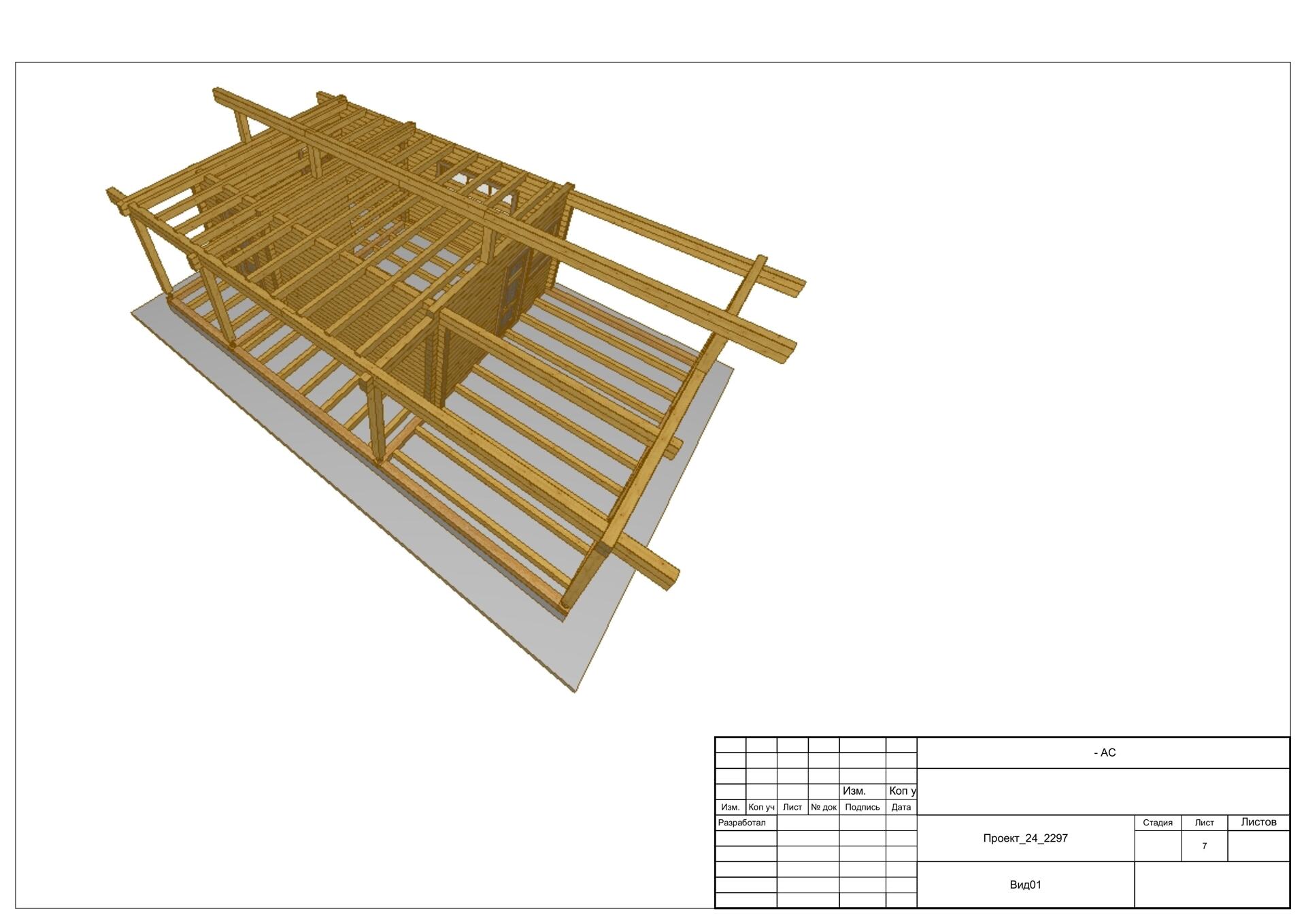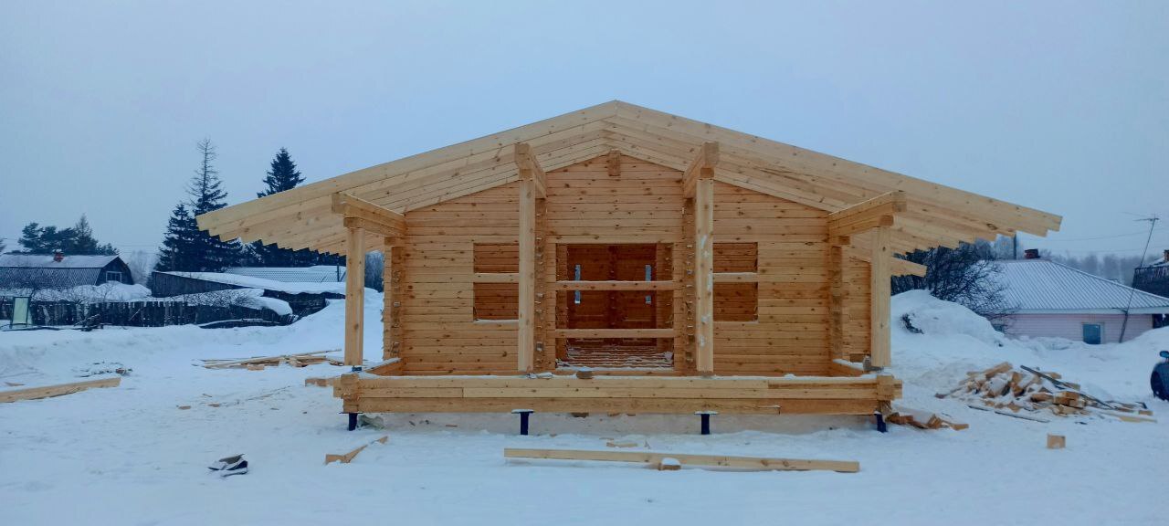 Обвязка - 1 нижний венец из нестроганного бруса лиственницы. Толщина сечения согласно выбранной толщины наружных стен.