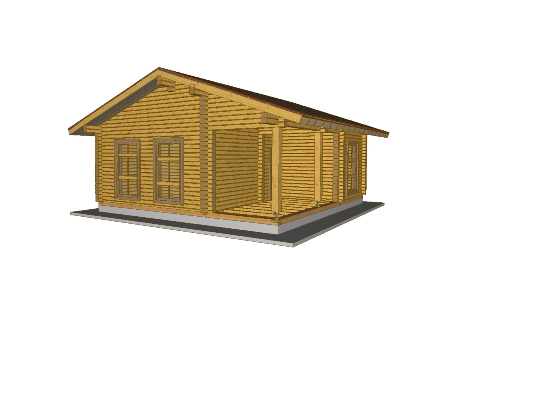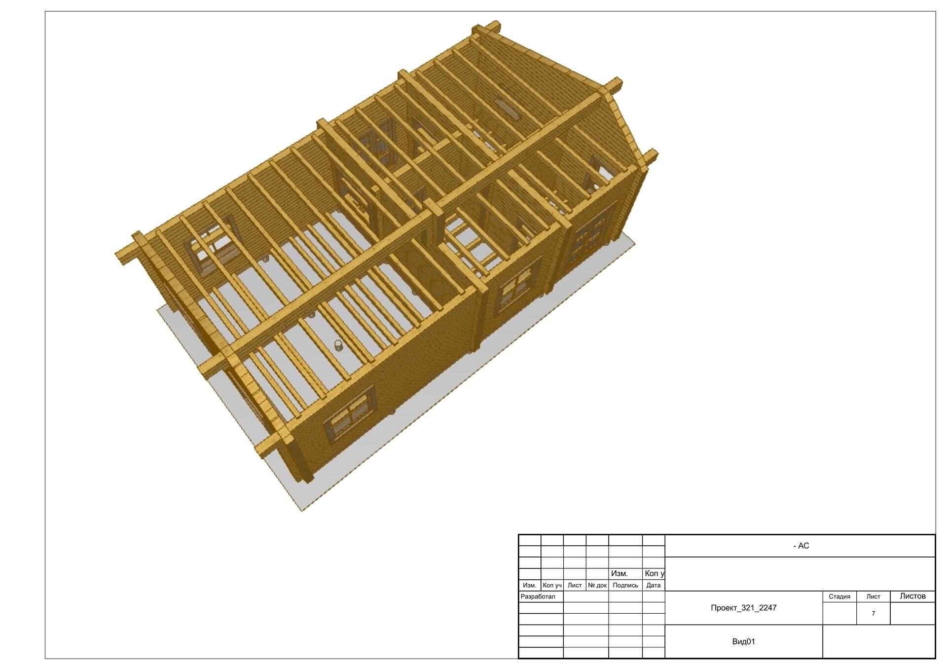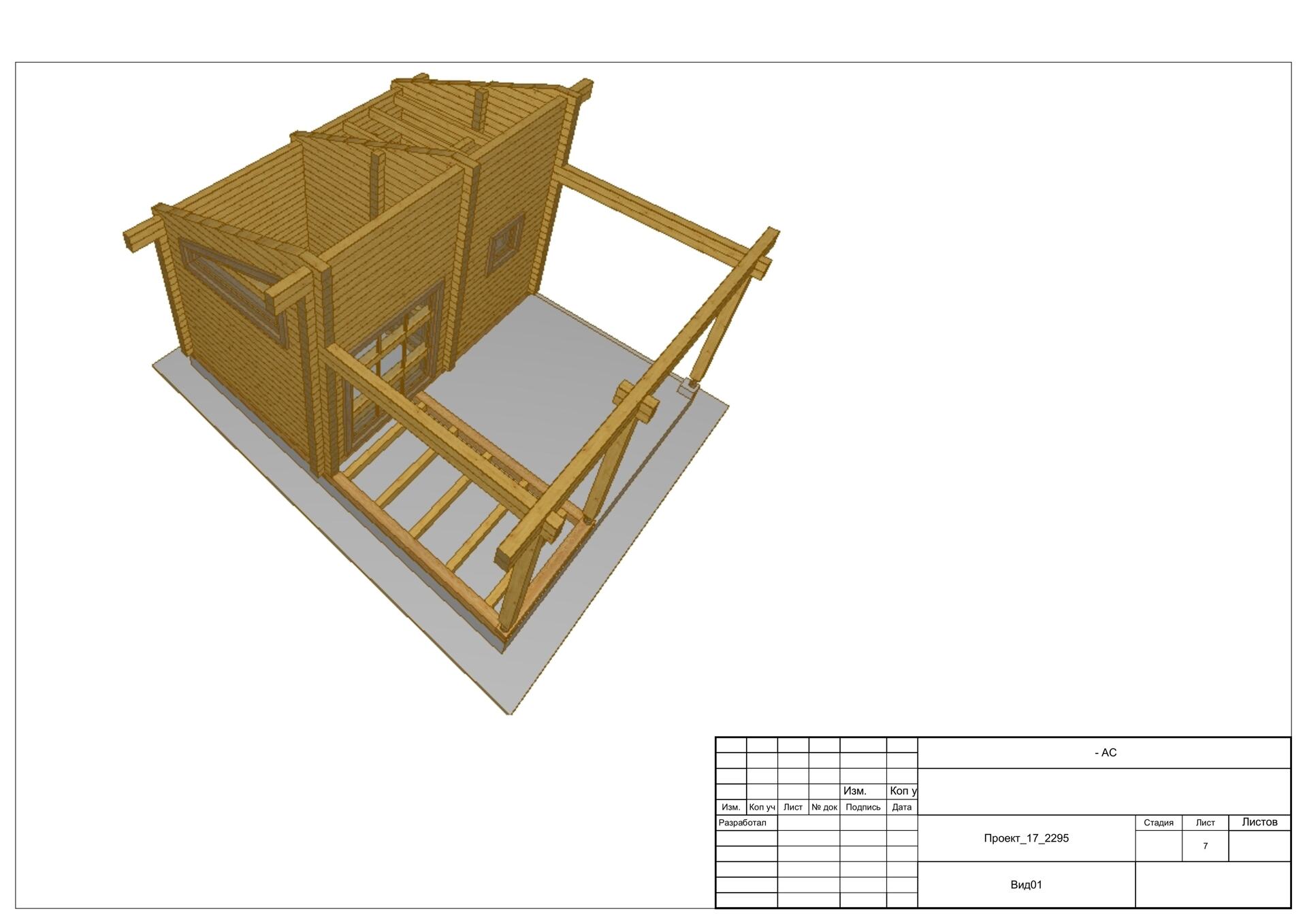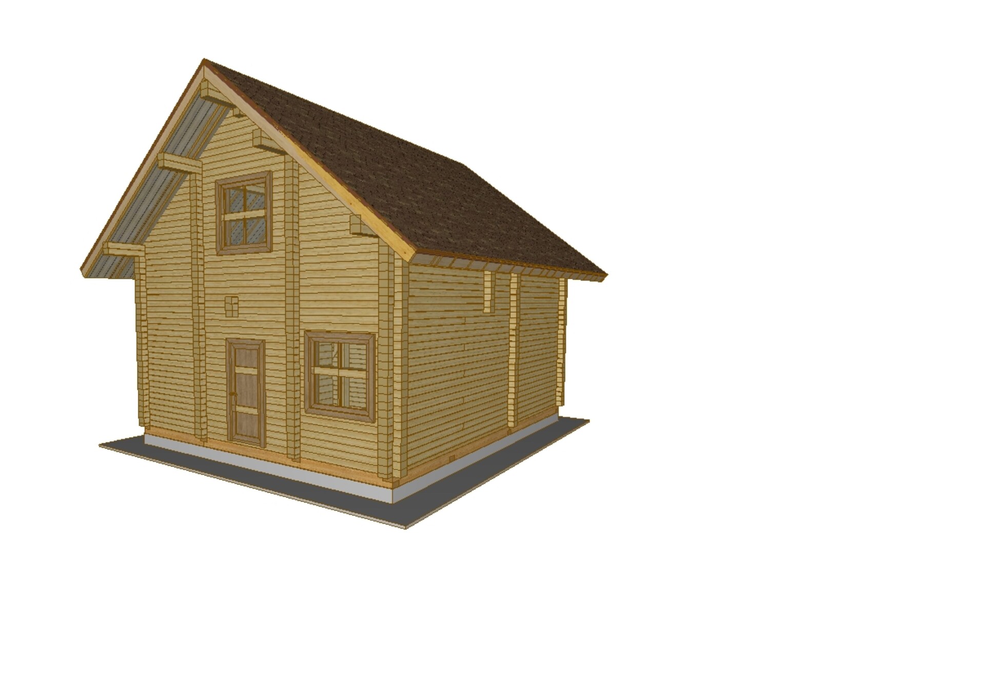Обвязка - 1 нижний венец из нестроганного бруса лиственницы. Толщина сечения согласно выбранной толщины наружных стен.