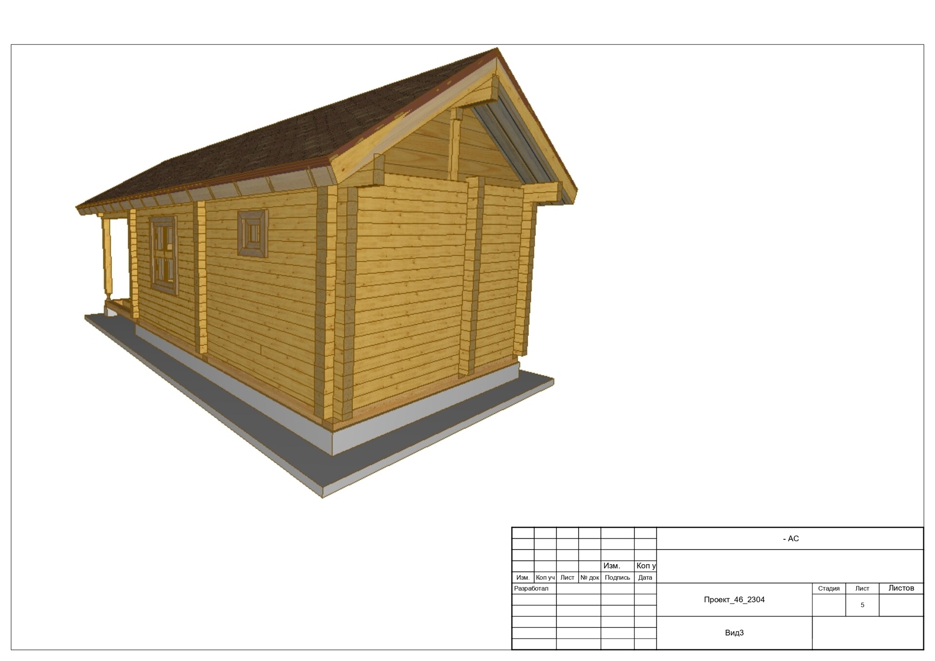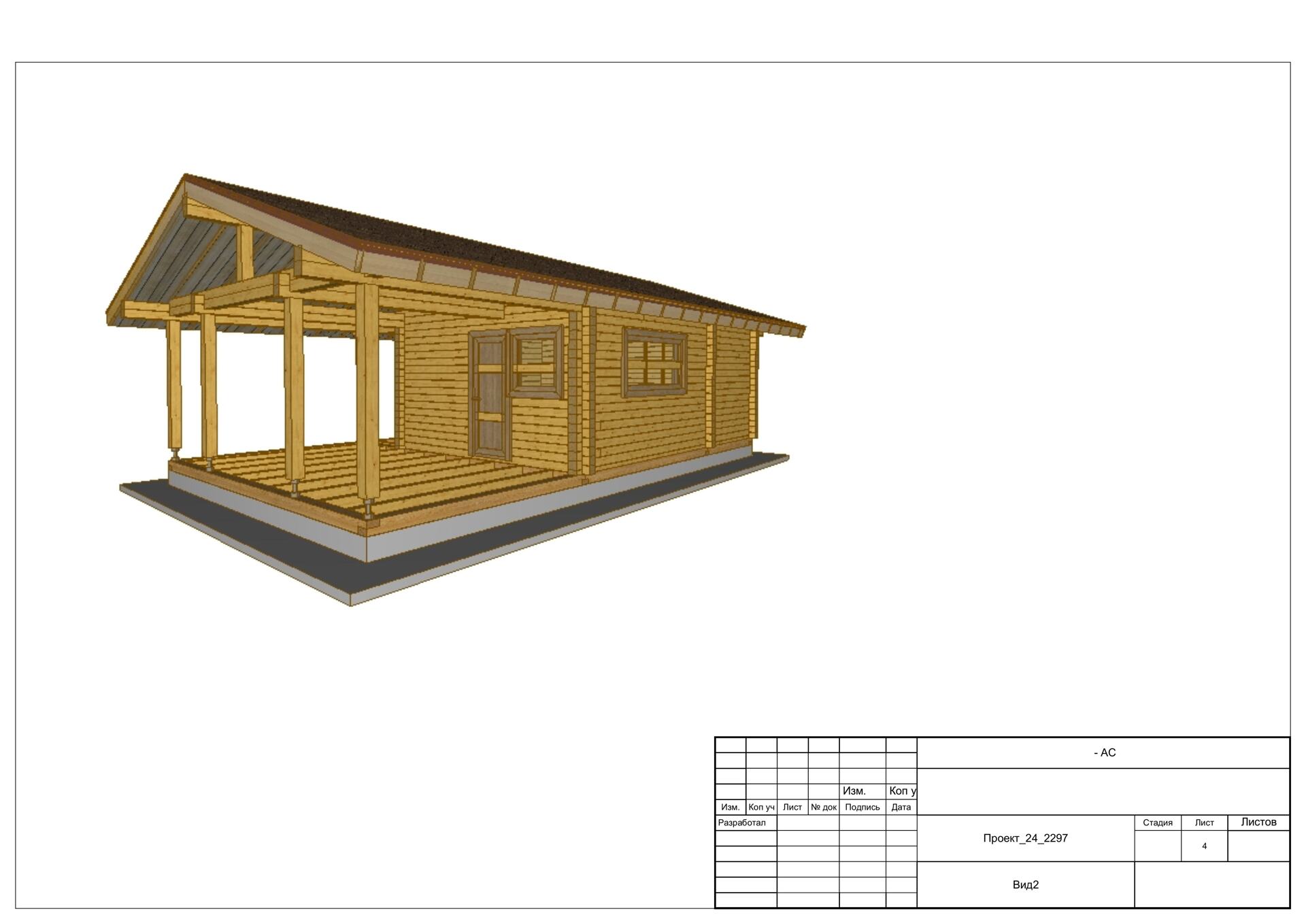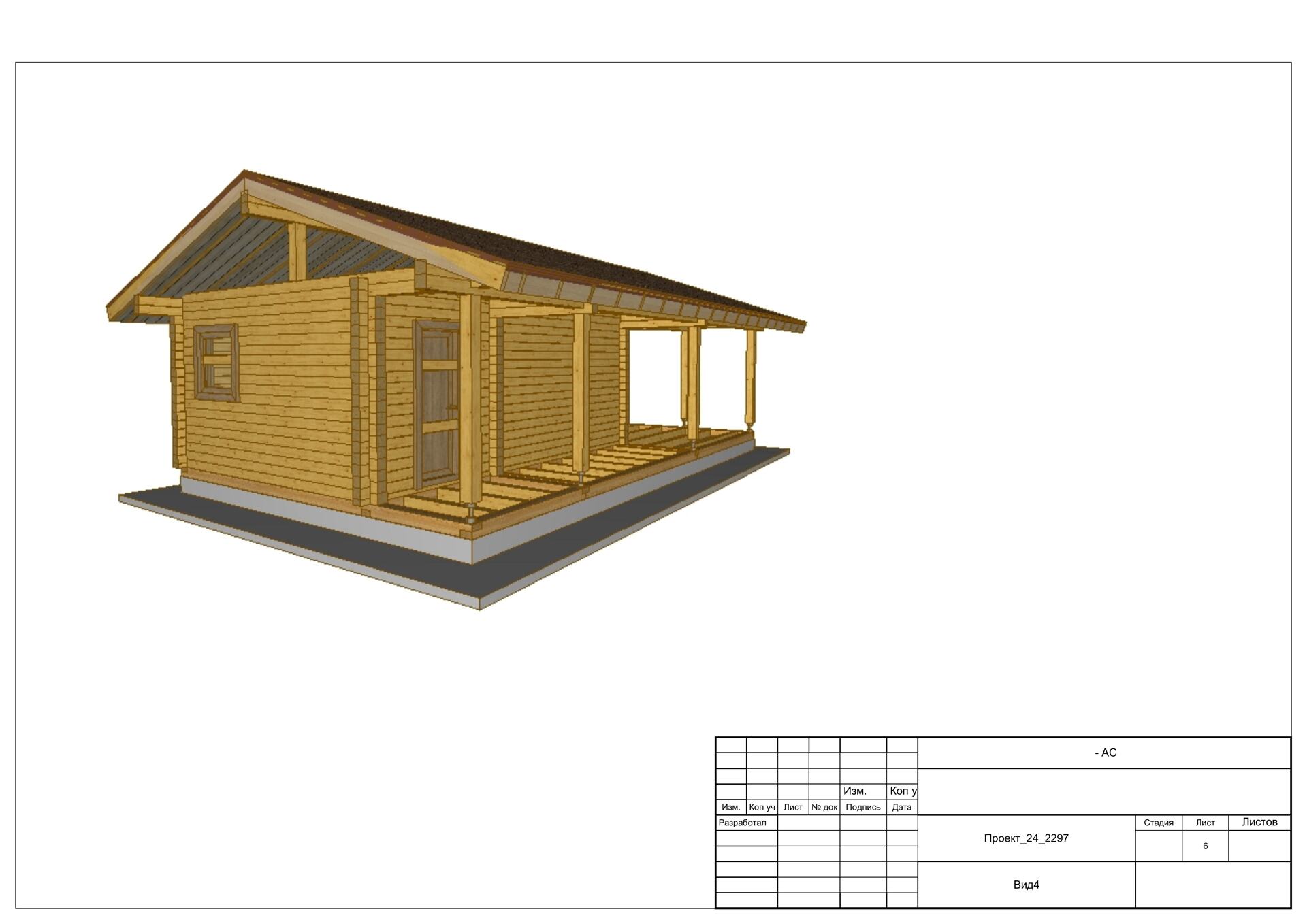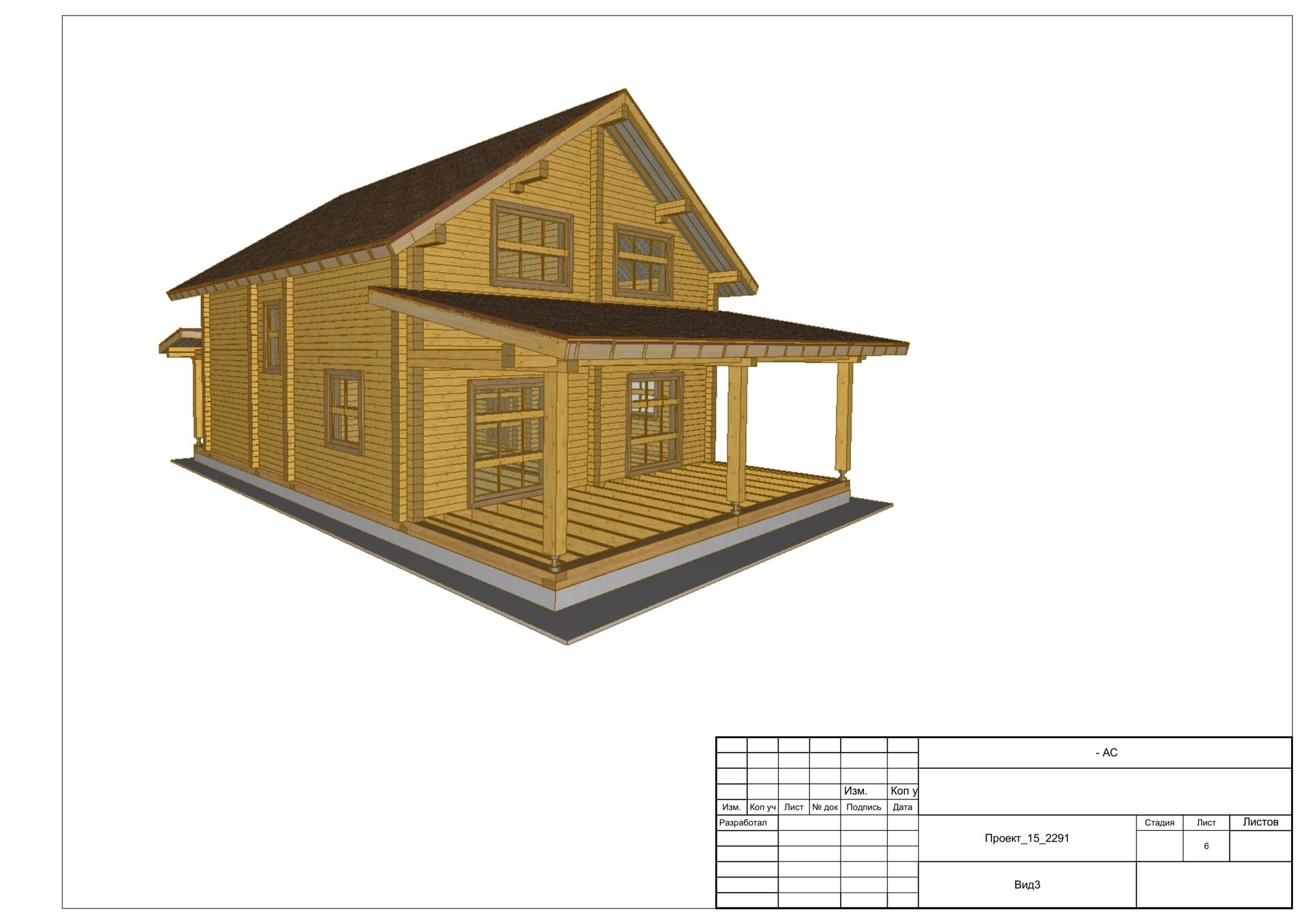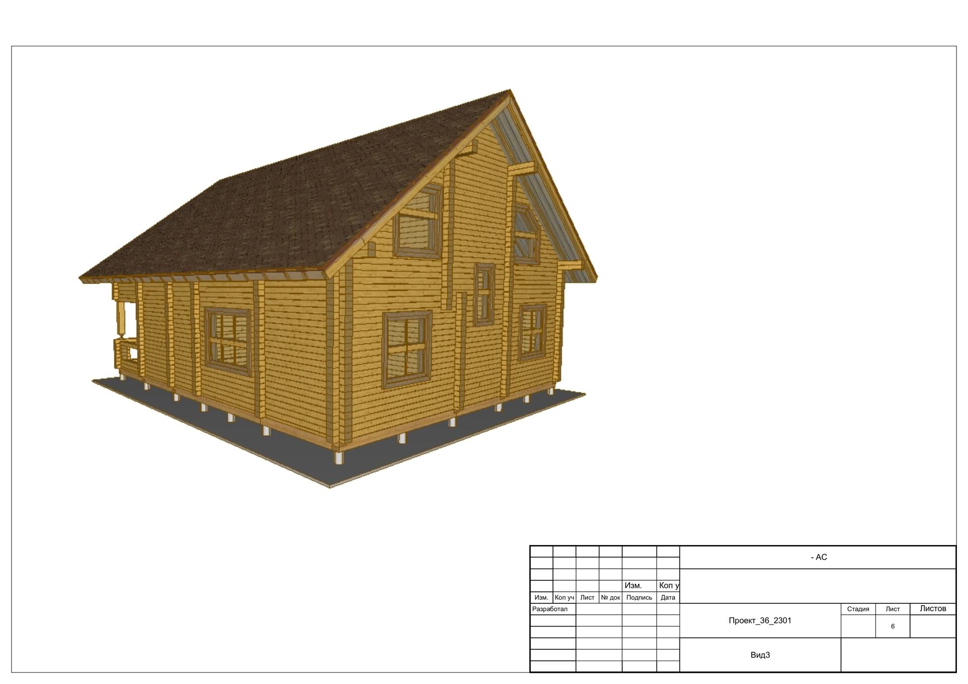 Дом 6х4 с большой террасой из профилированного бруса 140х140. Артикул: 24_2297