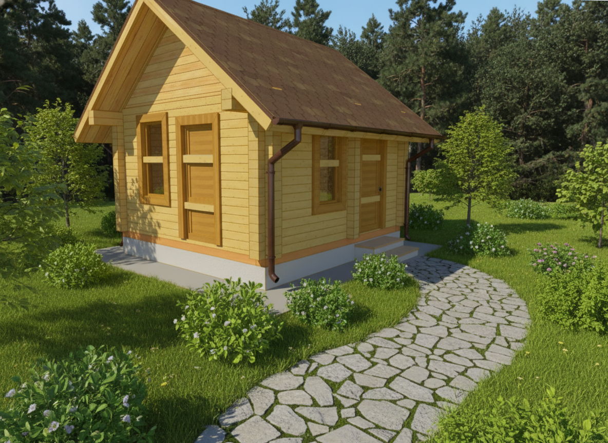 Стоимость в комплектации «под усадку»: обвязка, лаги пола, балки потолка, стропила, обрешётка, металлочерепица, крепёж, сборка. Фундамент и доставка оплачивается отдельно!