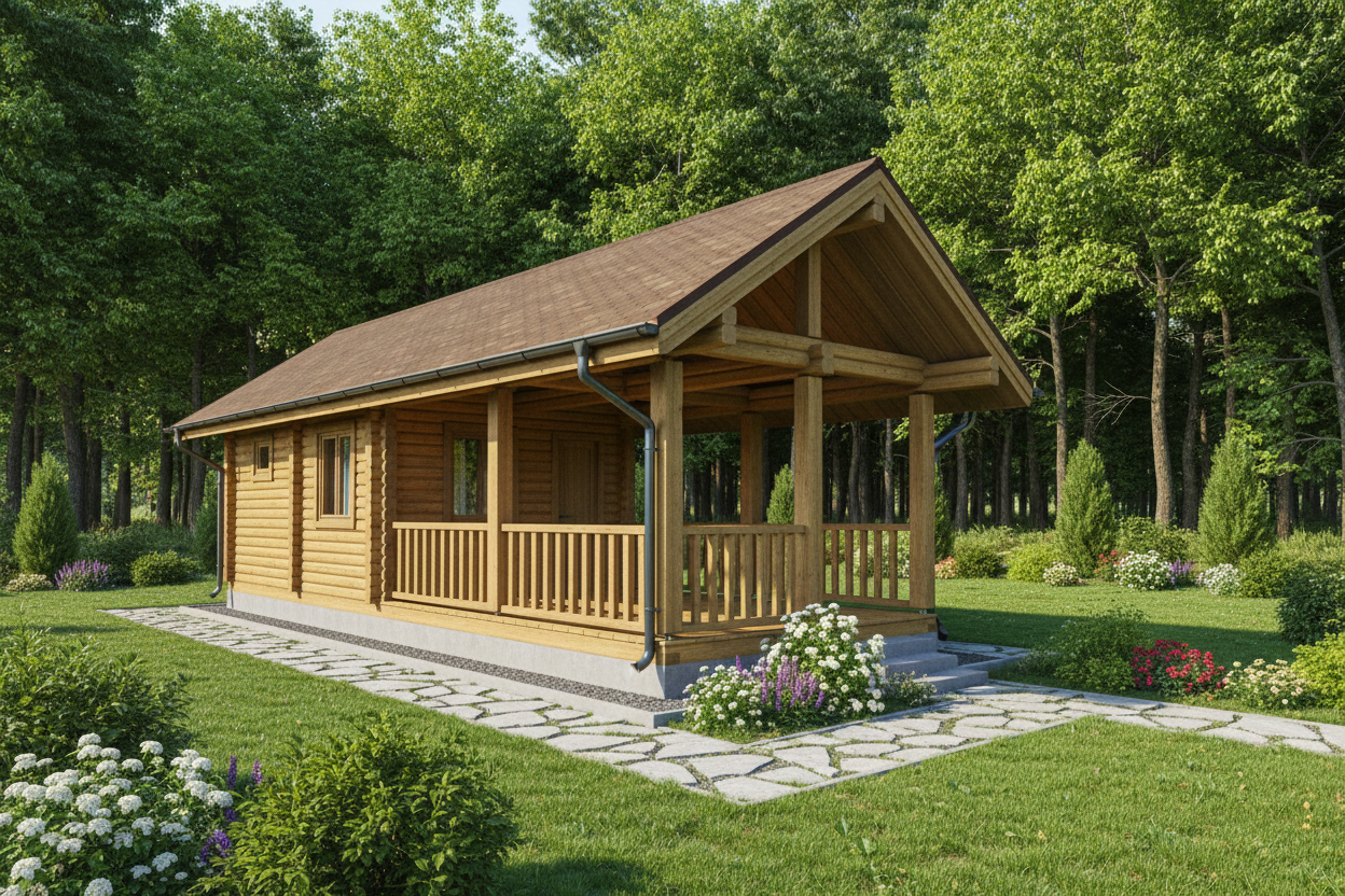 Дом 6х6 из профилированного бруса в чашку с террасой