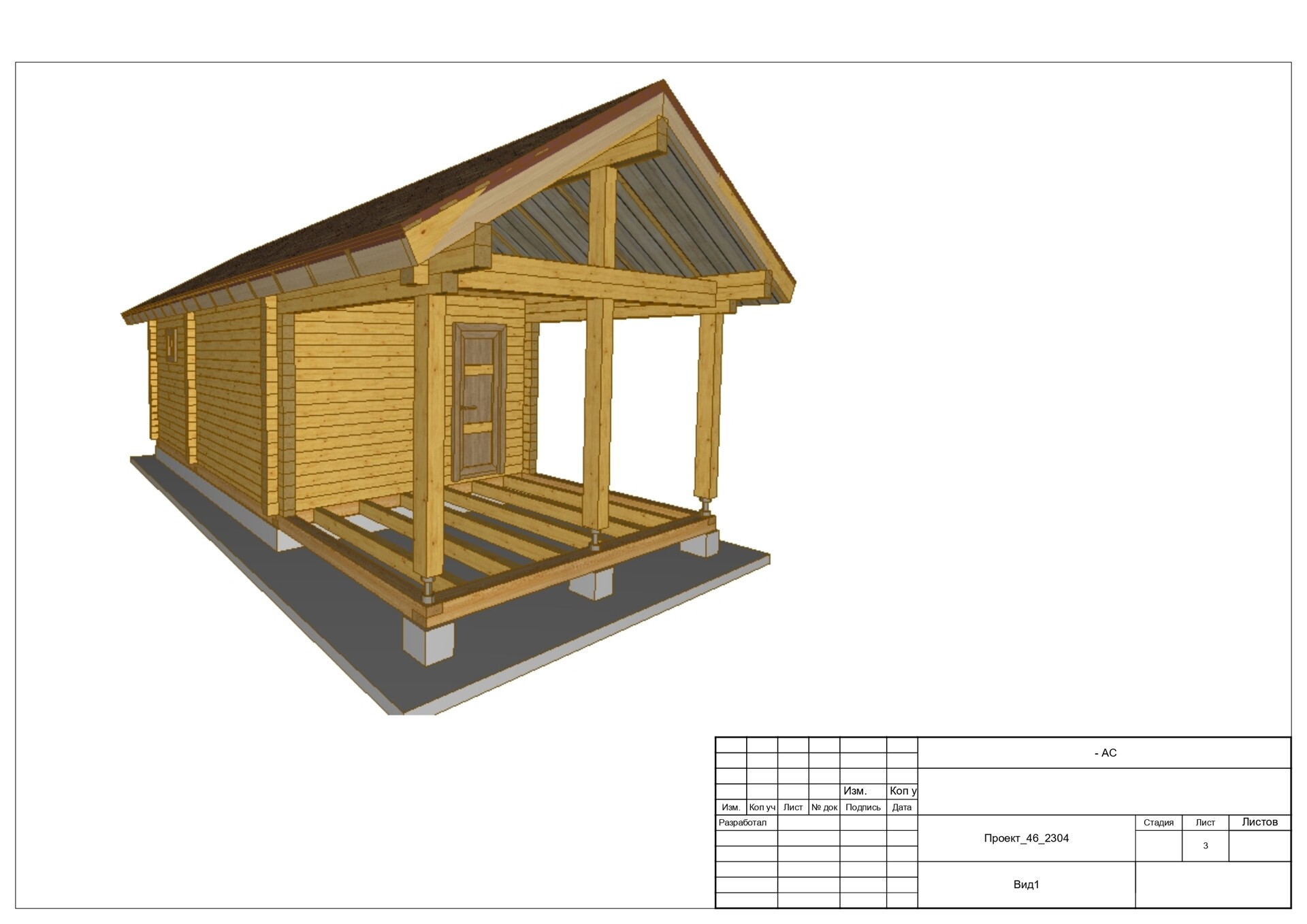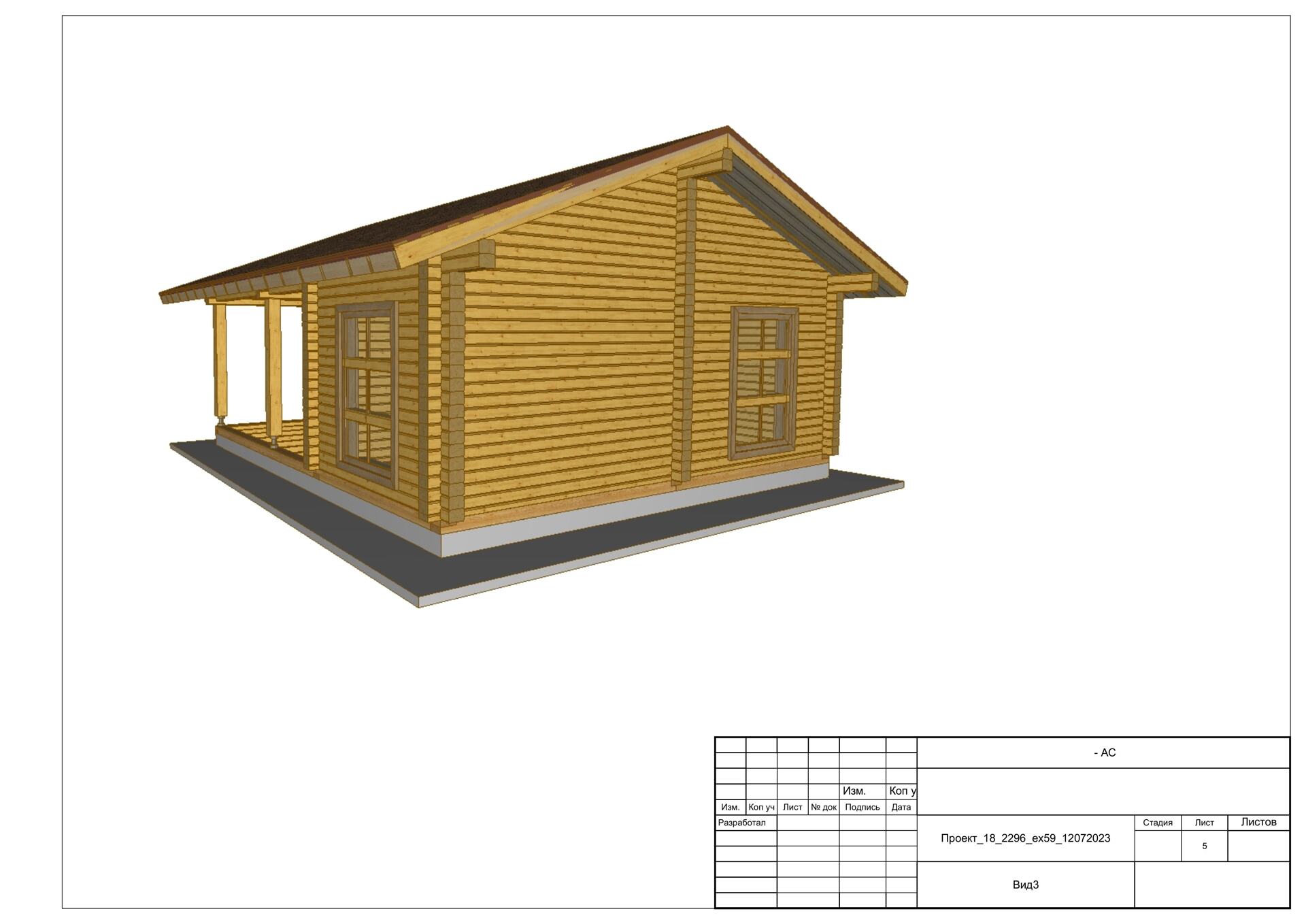 Дом 6х4 с большой террасой из профилированного бруса в чашку 140х140. Артикул: 24_2297