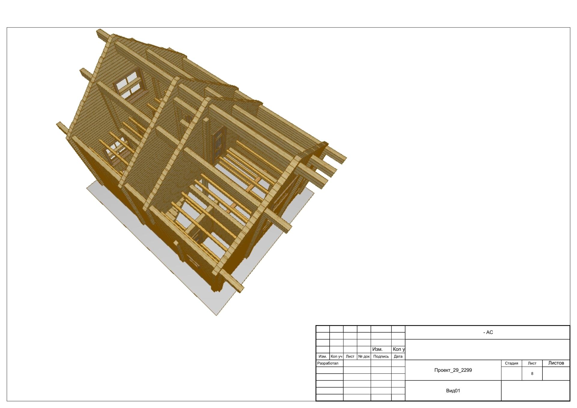 Дом 6,6х8,2 из профилированного бруса в чашку 140х190. Артикул: 29_2299