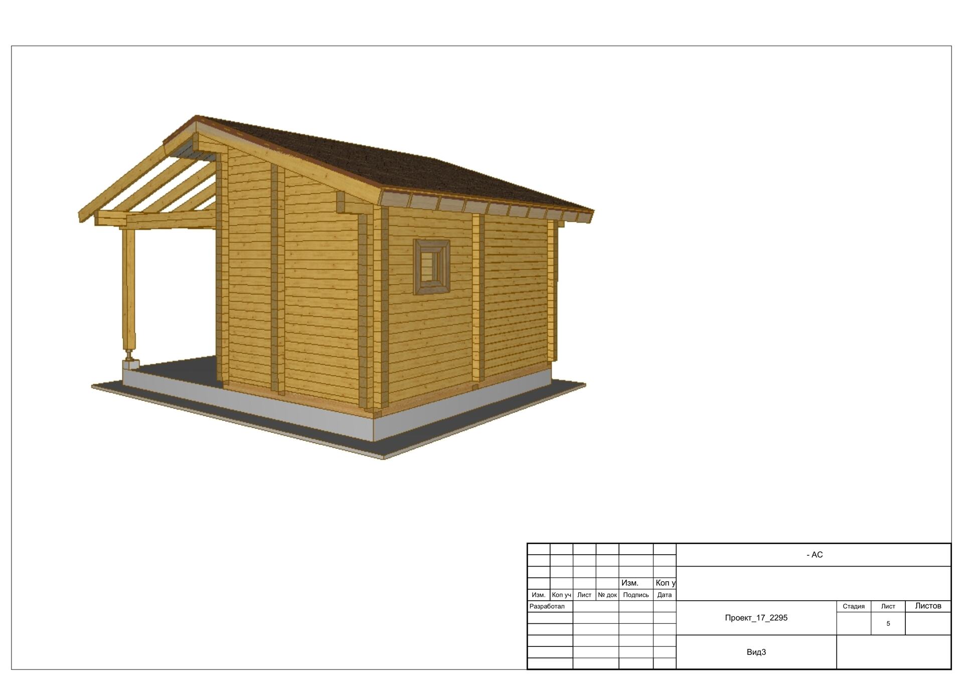 Баня 3х4,8 с верандой из профилированного бруса 140х140. Артикул: 17_2295