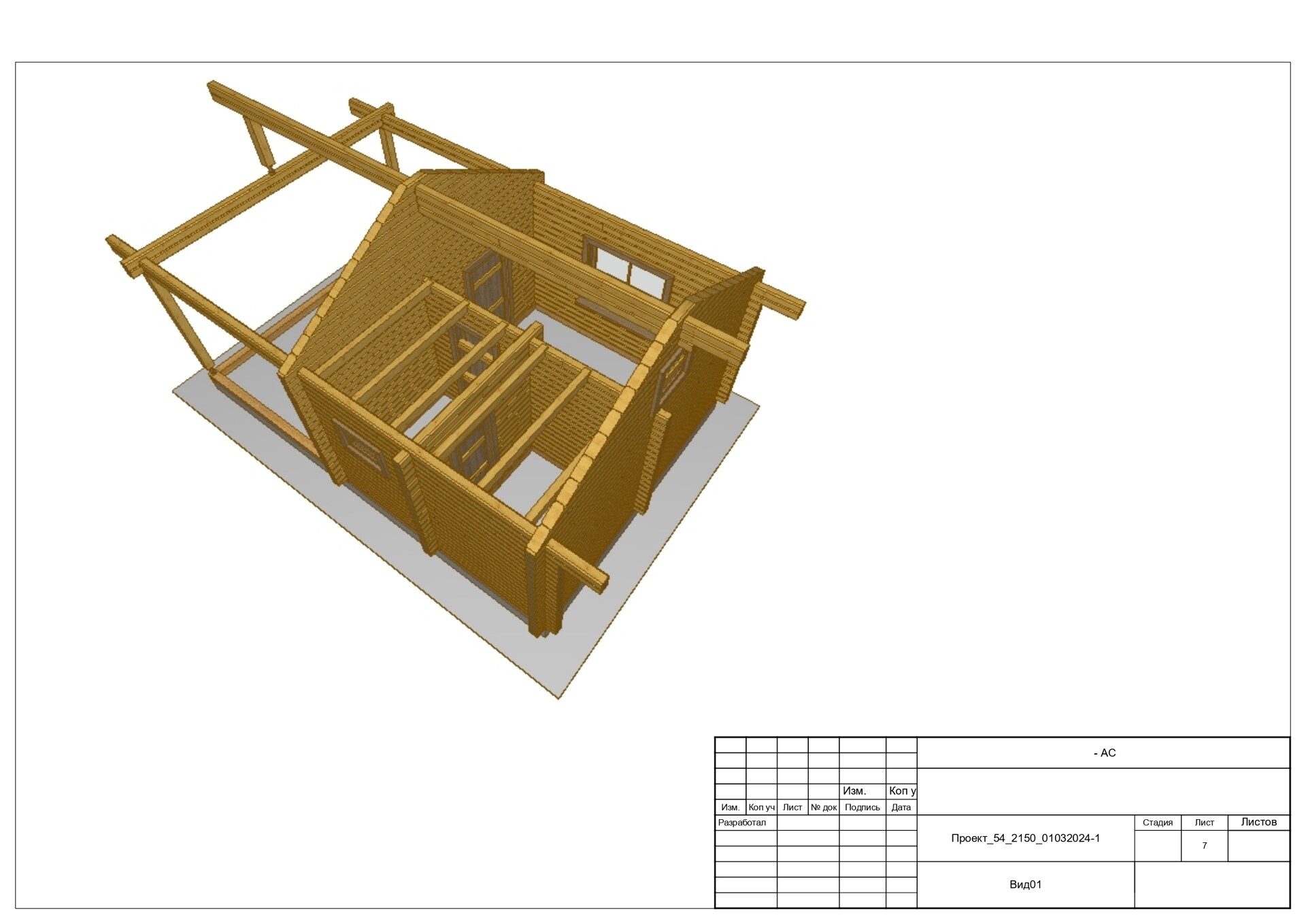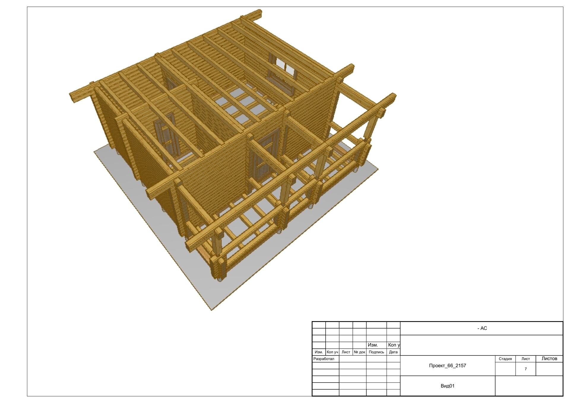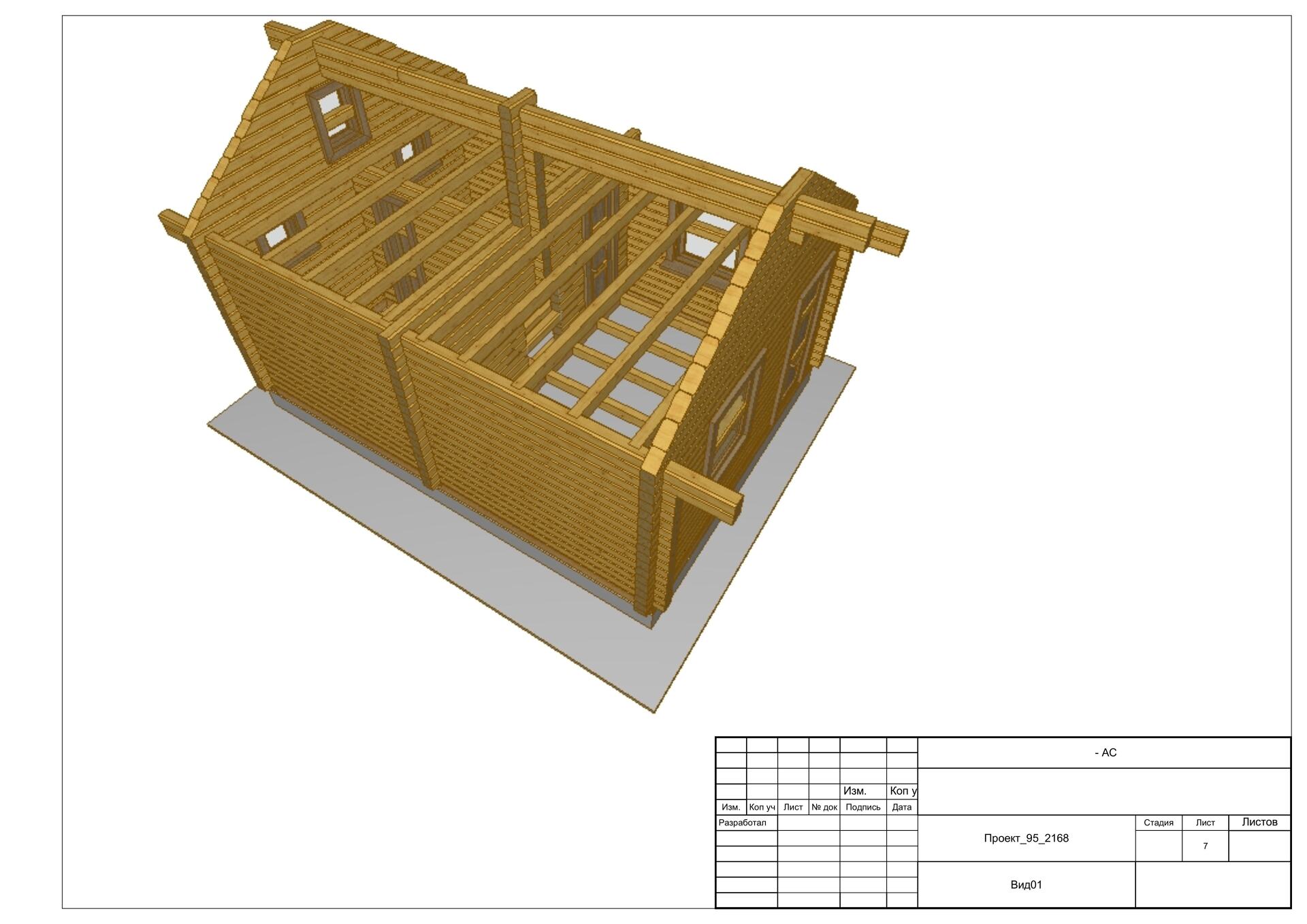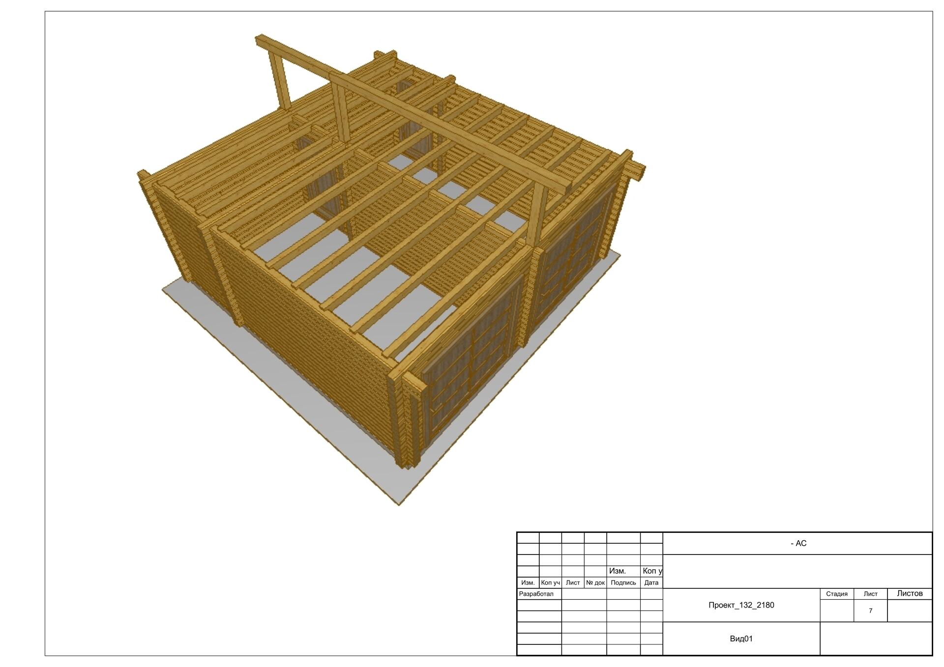 Обвязка - 1 нижний венец из нестроганного бруса лиственницы. Толщина сечения согласно выбранной толщины наружных стен.