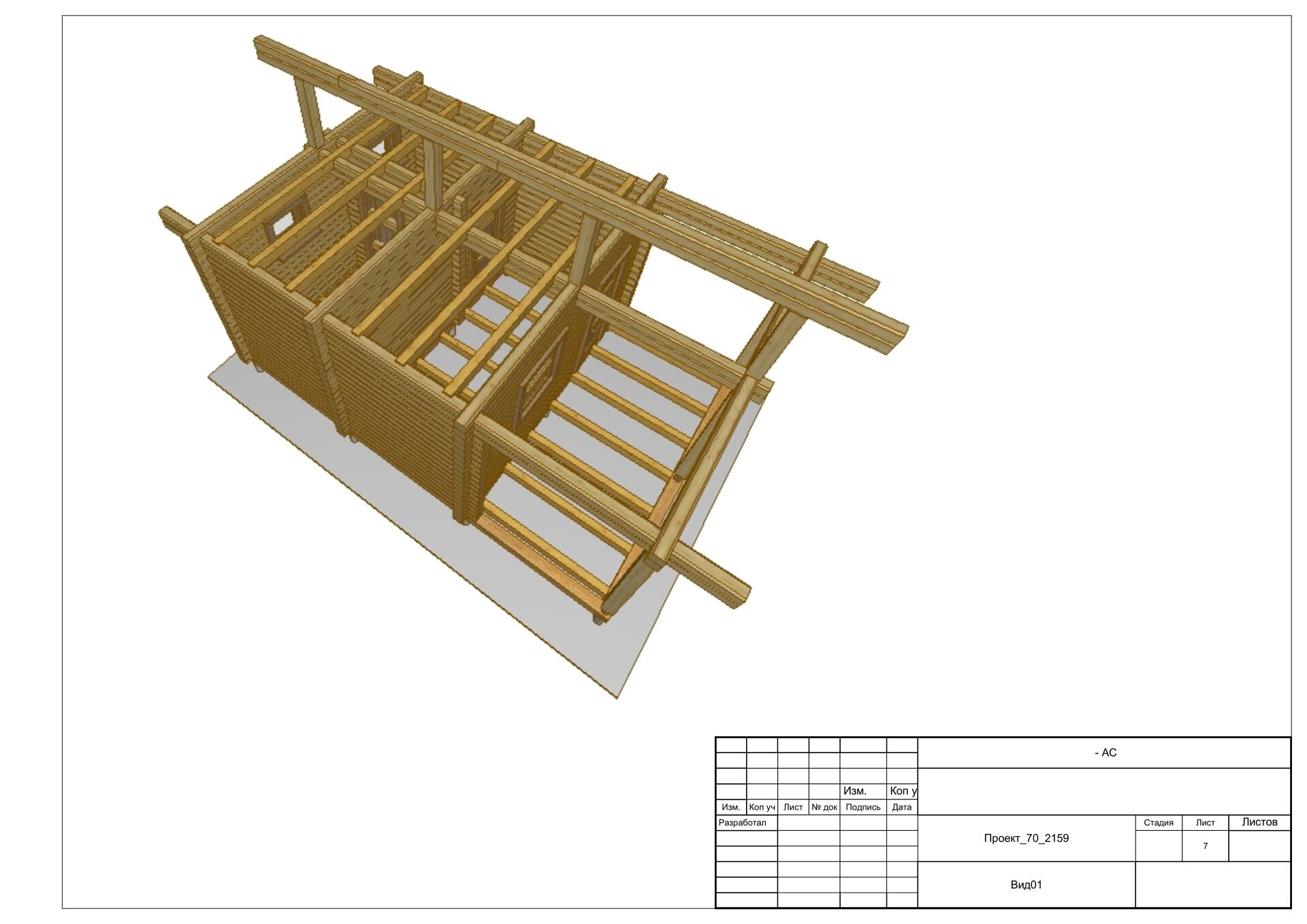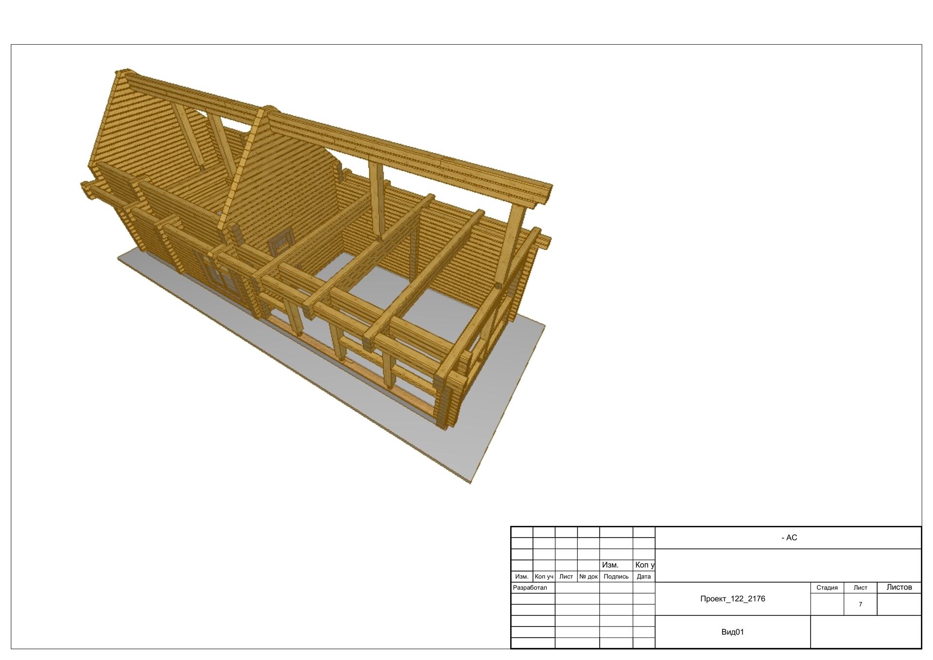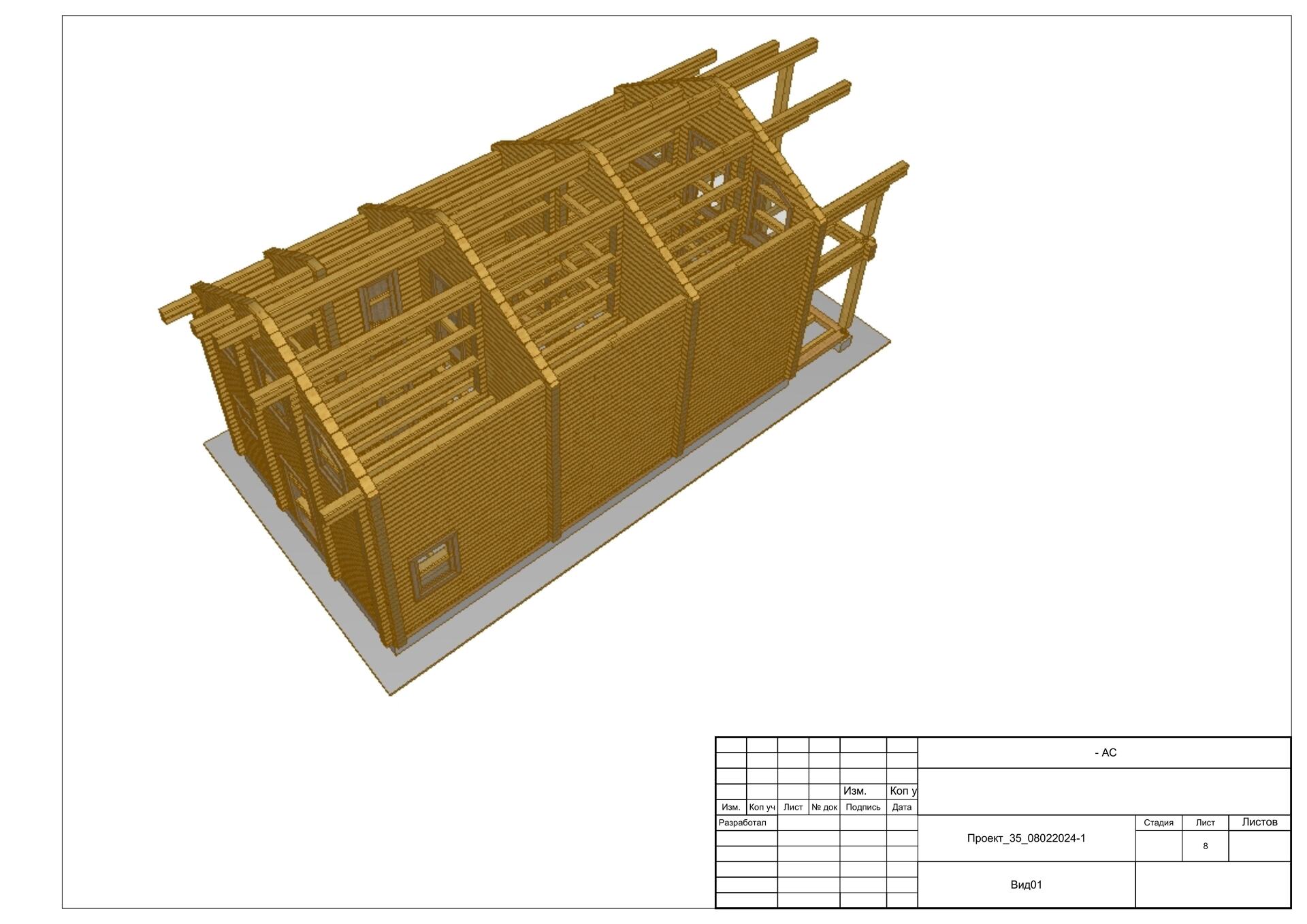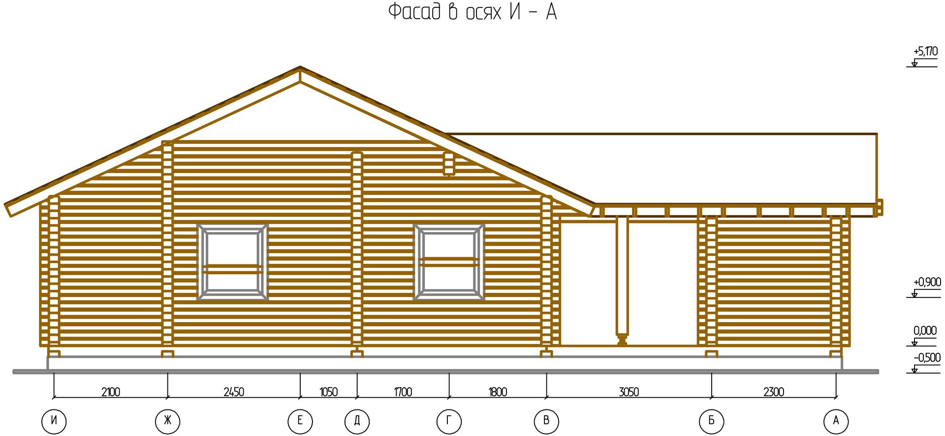 Обвязка - 1 нижний венец из нестроганного бруса лиственницы. Толщина сечения согласно выбранной толщины наружных стен.