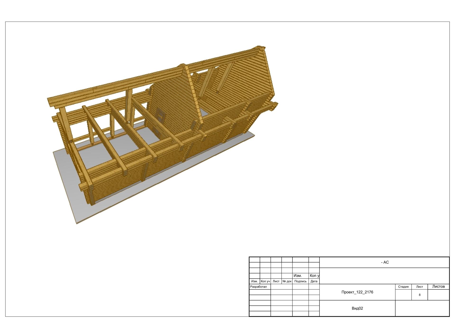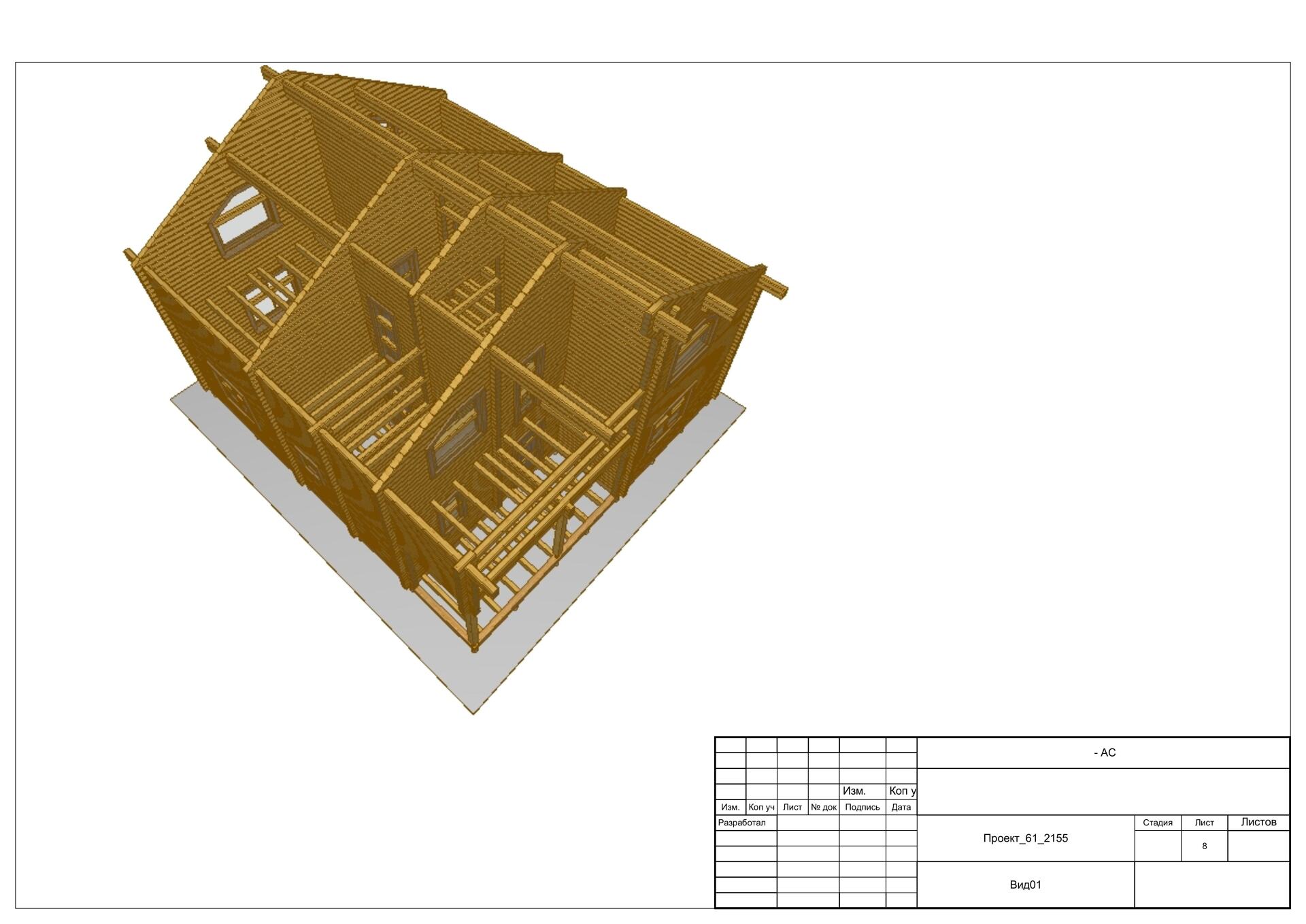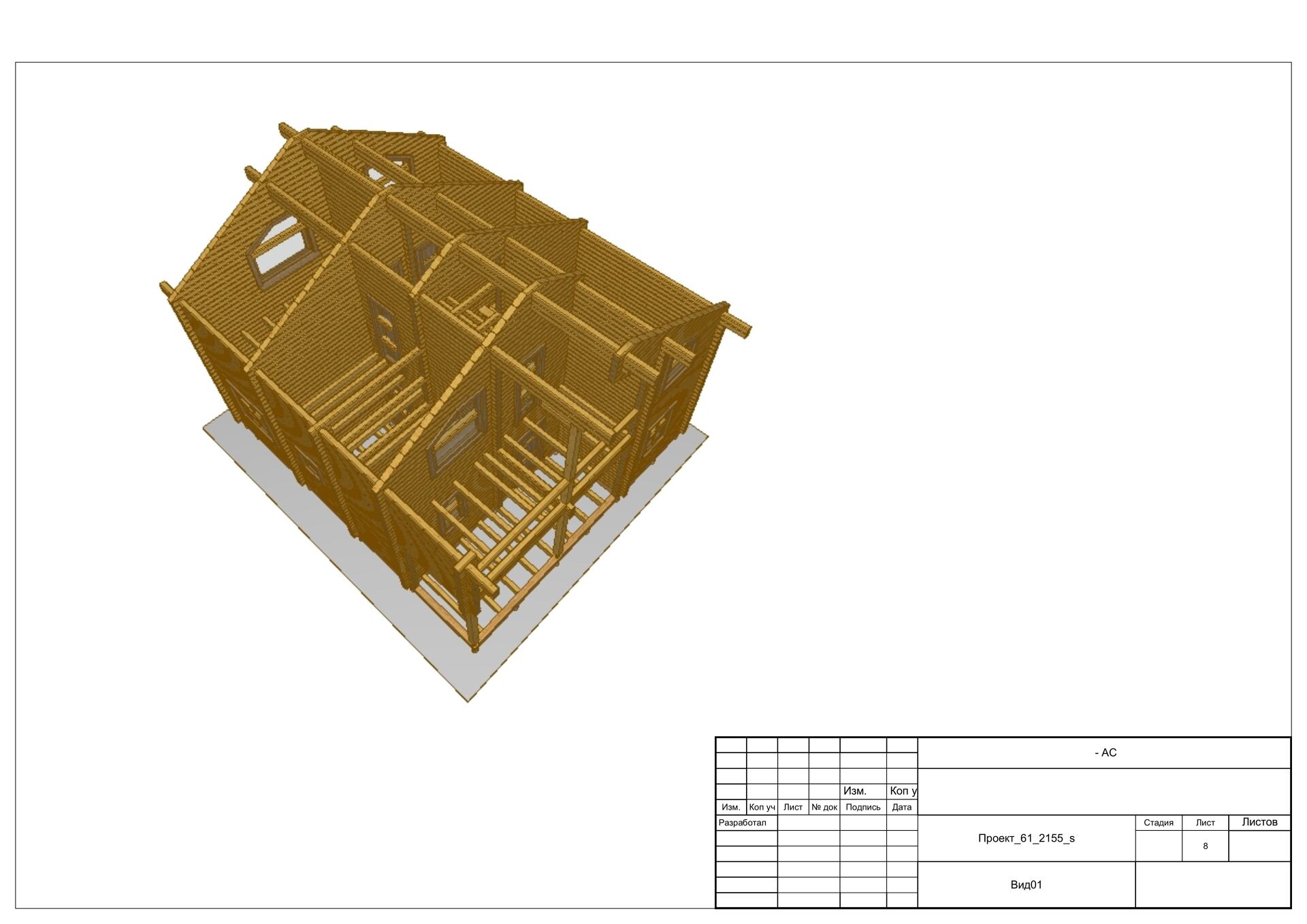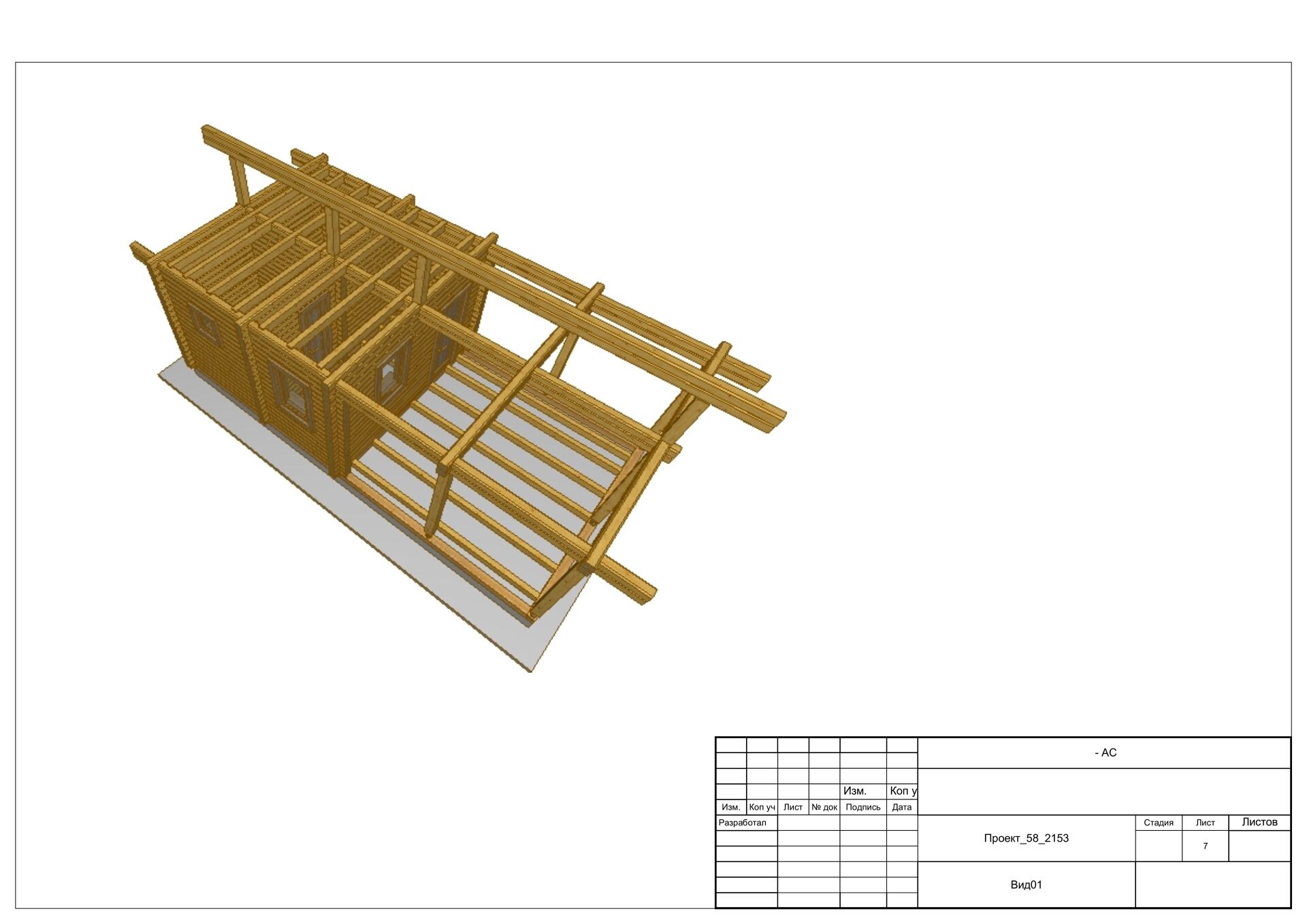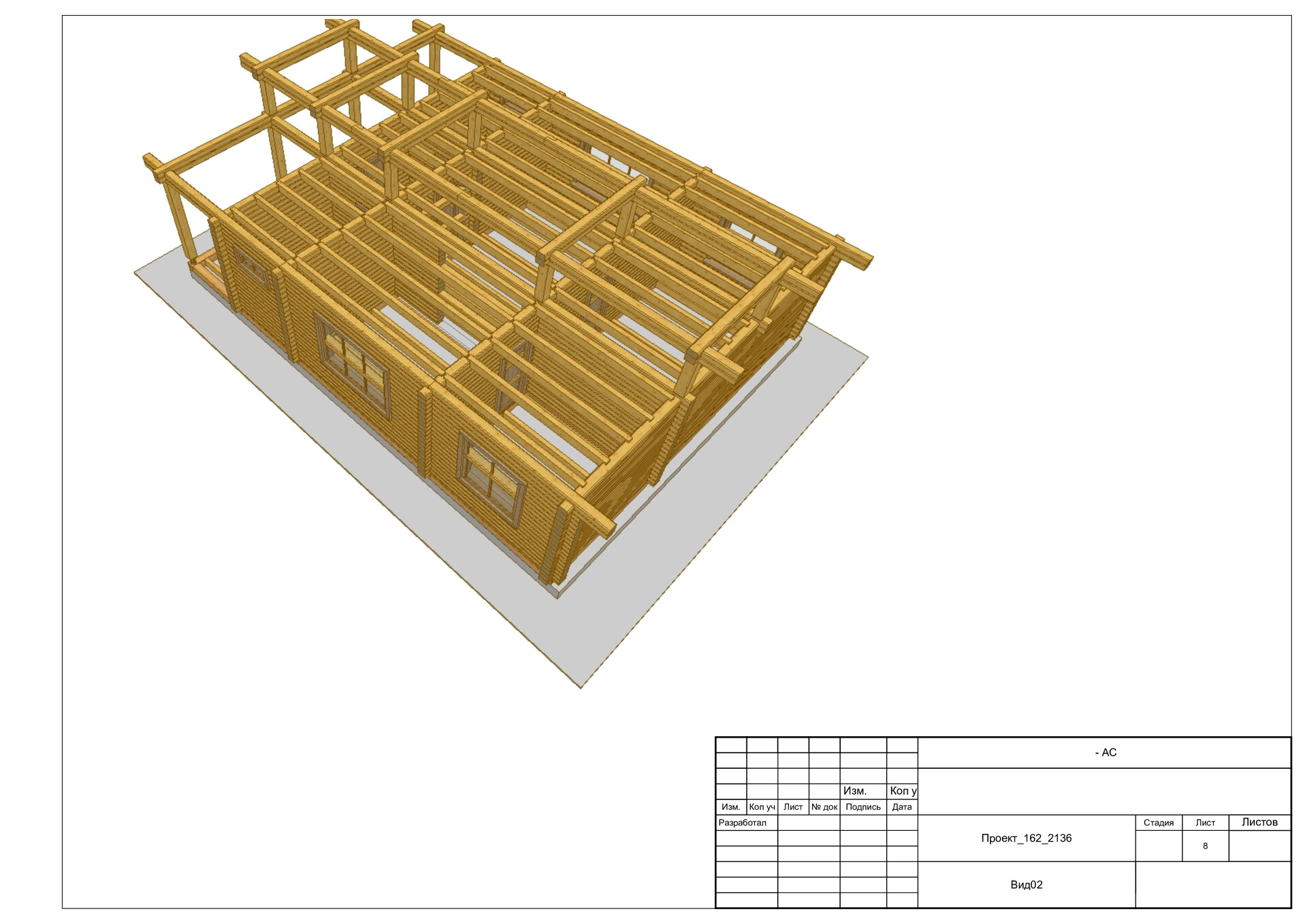 Обвязка - 1 нижний венец из нестроганного бруса лиственницы. Толщина сечения согласно выбранной толщины наружных стен.
