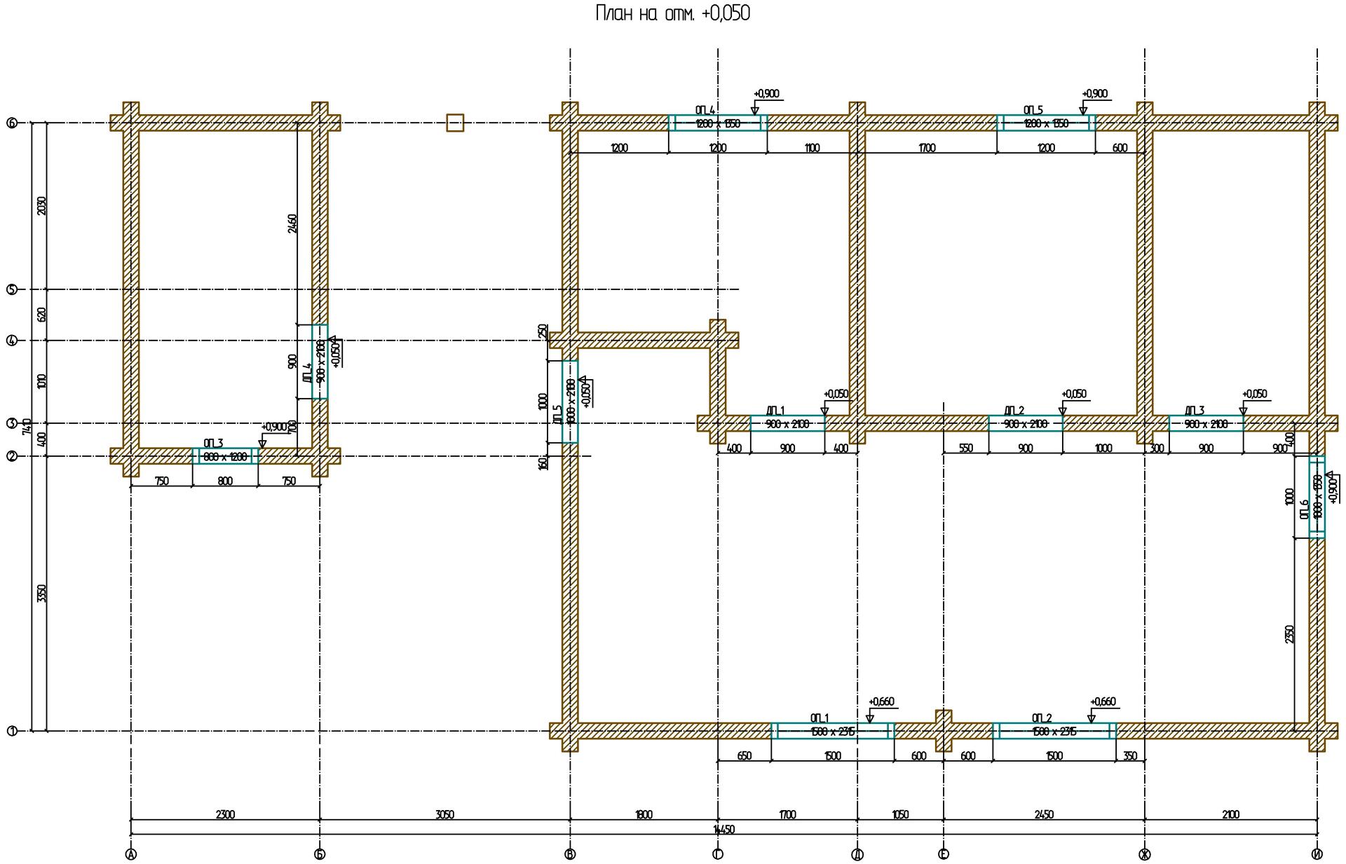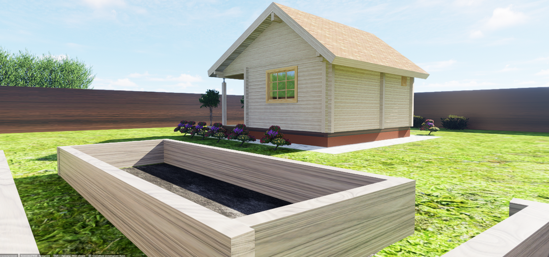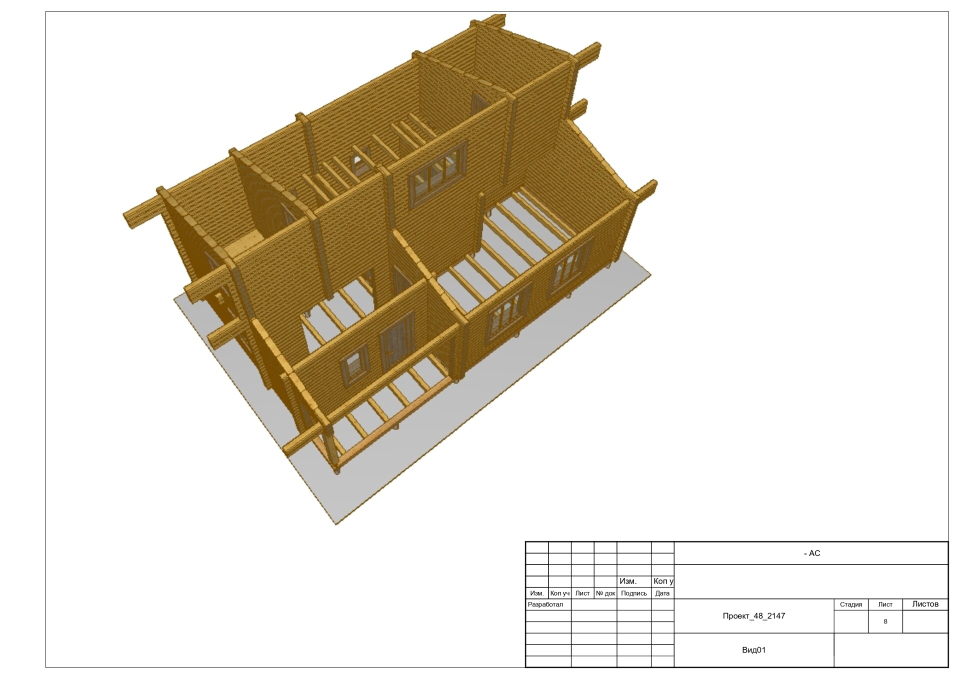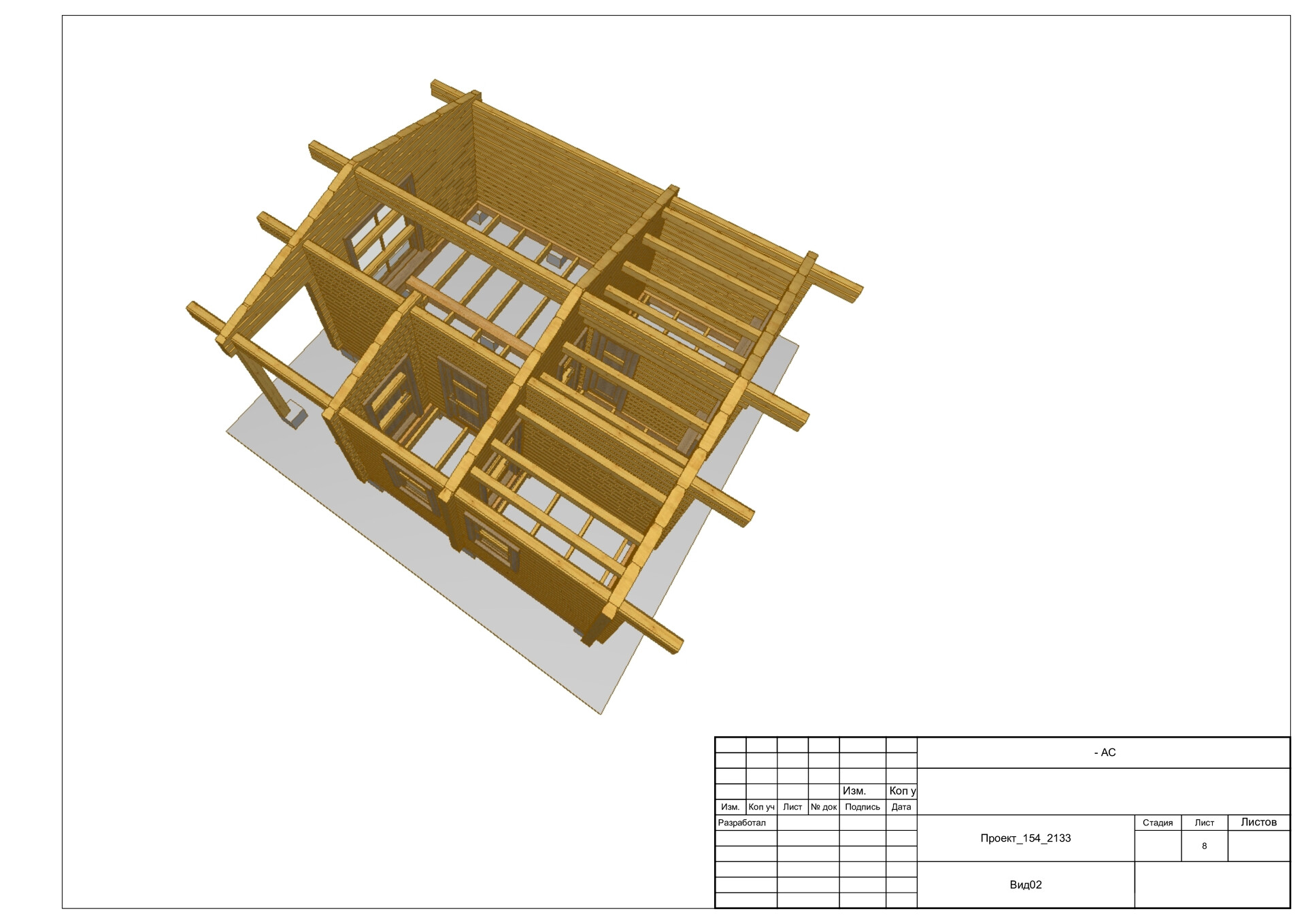 Обвязка - 1 нижний венец из нестроганного бруса лиственницы. Толщина сечения согласно выбранной толщины наружных стен.