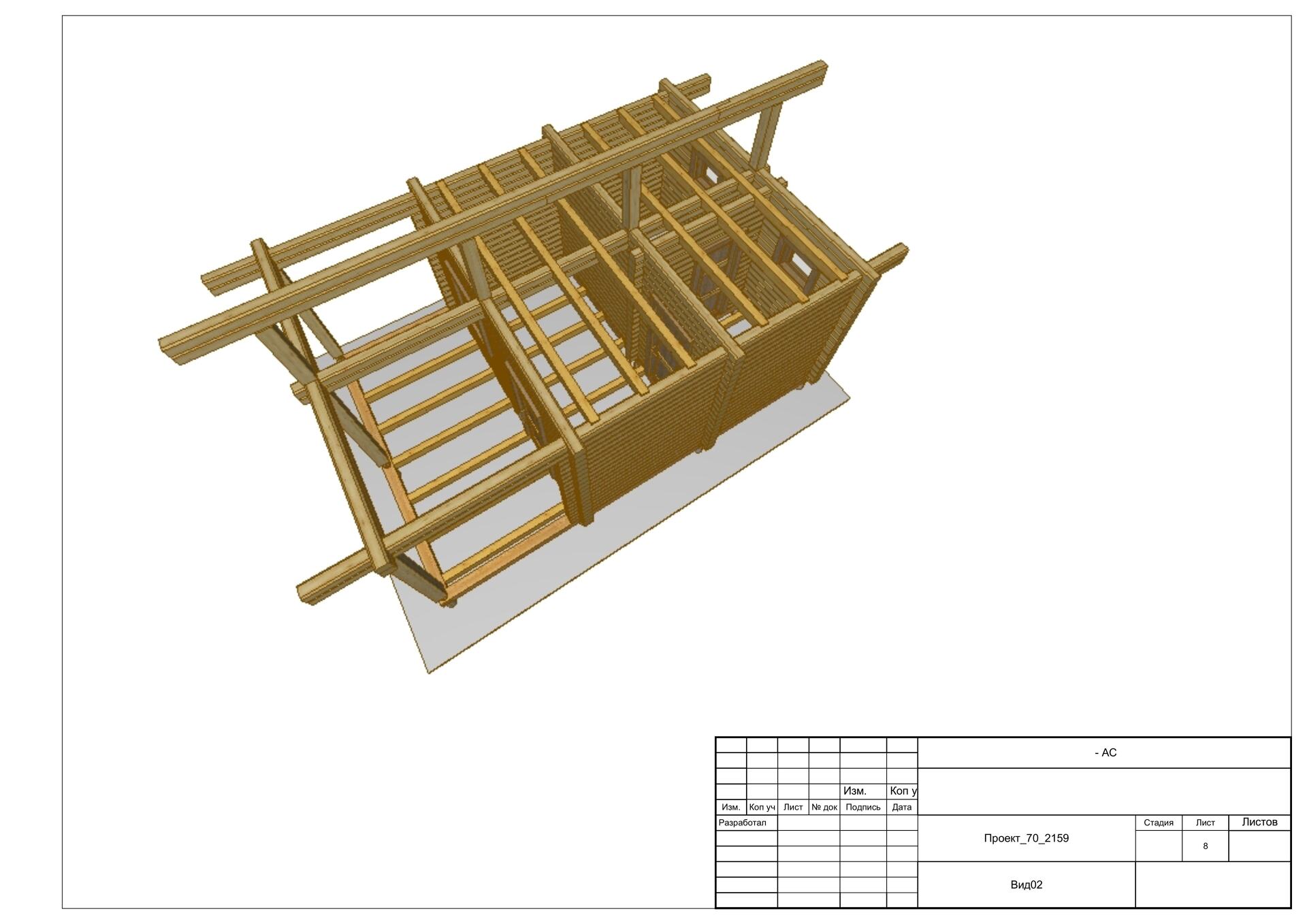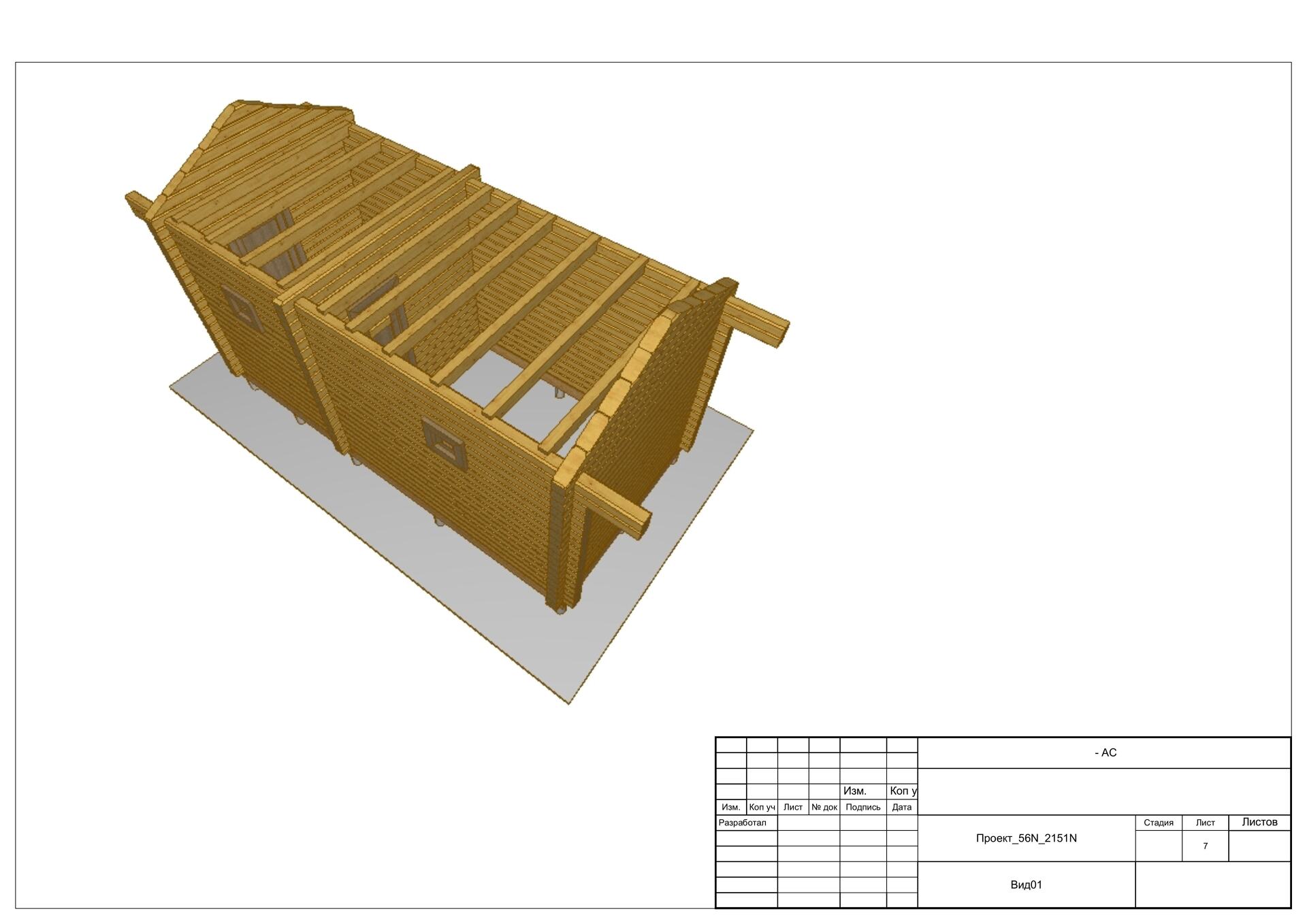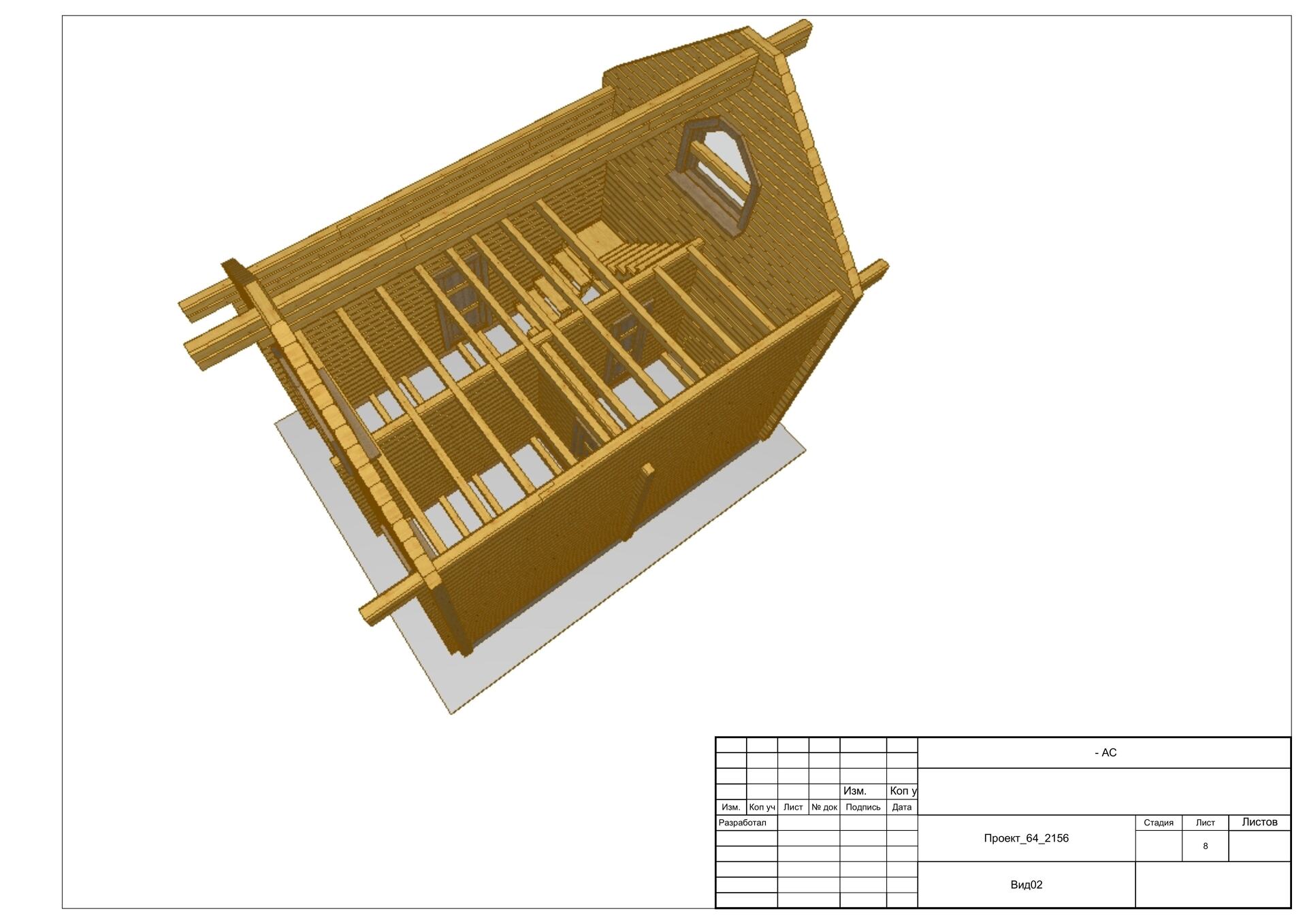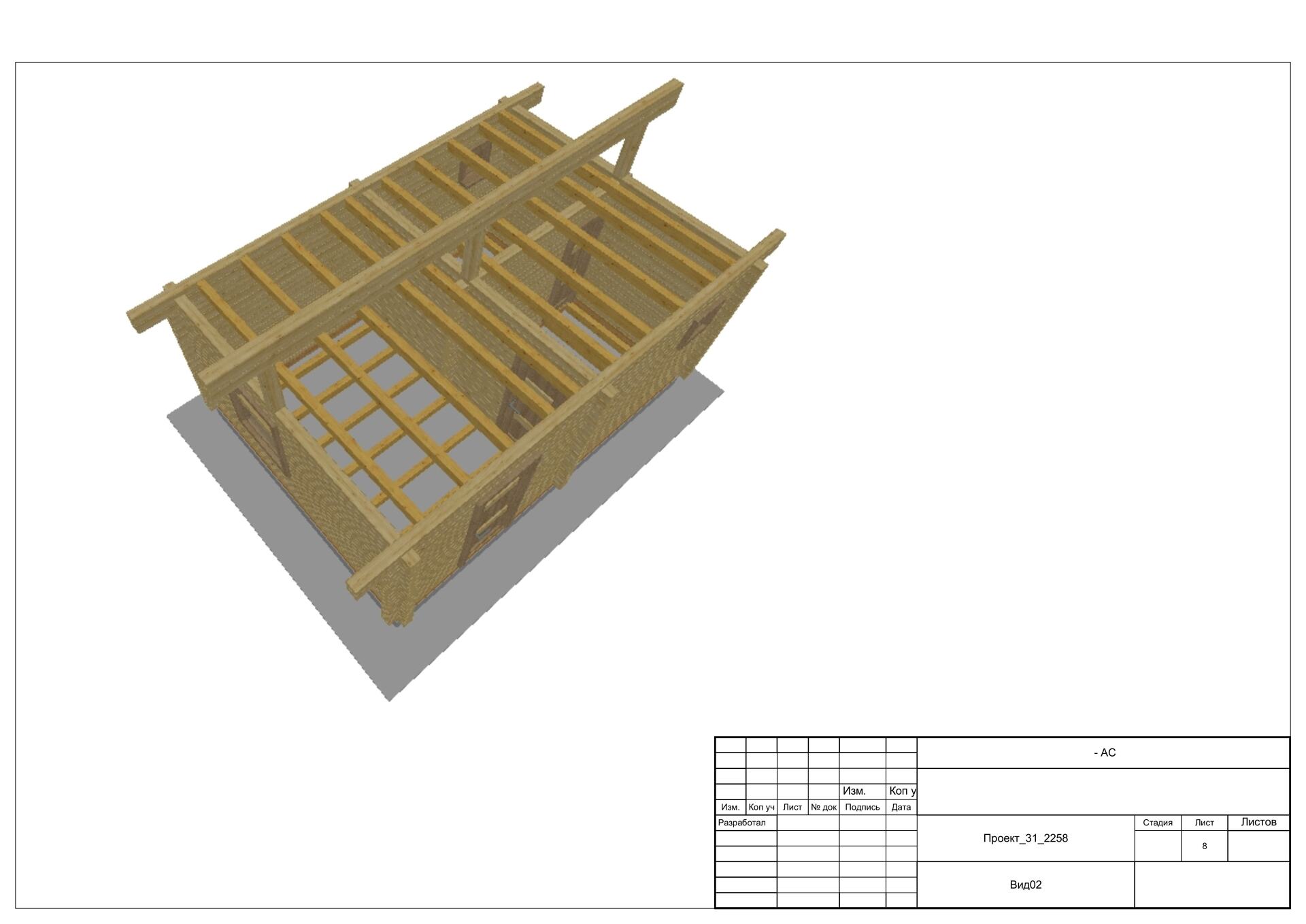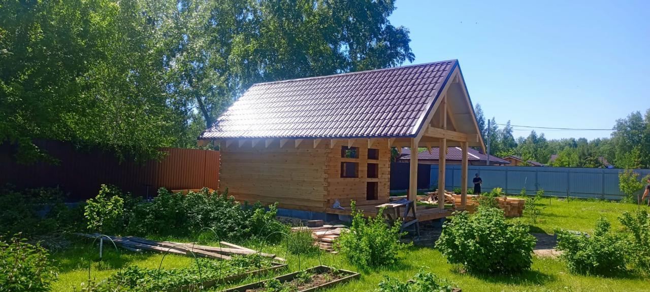 Стоимость в комплектации «под усадку»: обвязка, лаги пола, балки потолка, стропила, обрешётка, металлочерепица, крепёж, сборка.