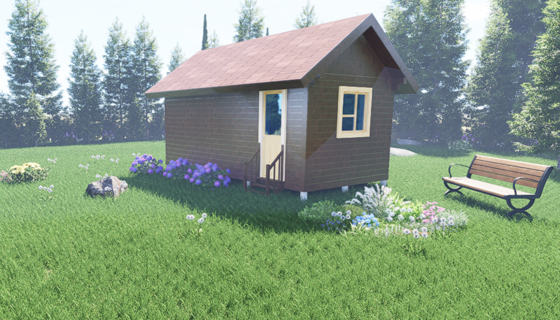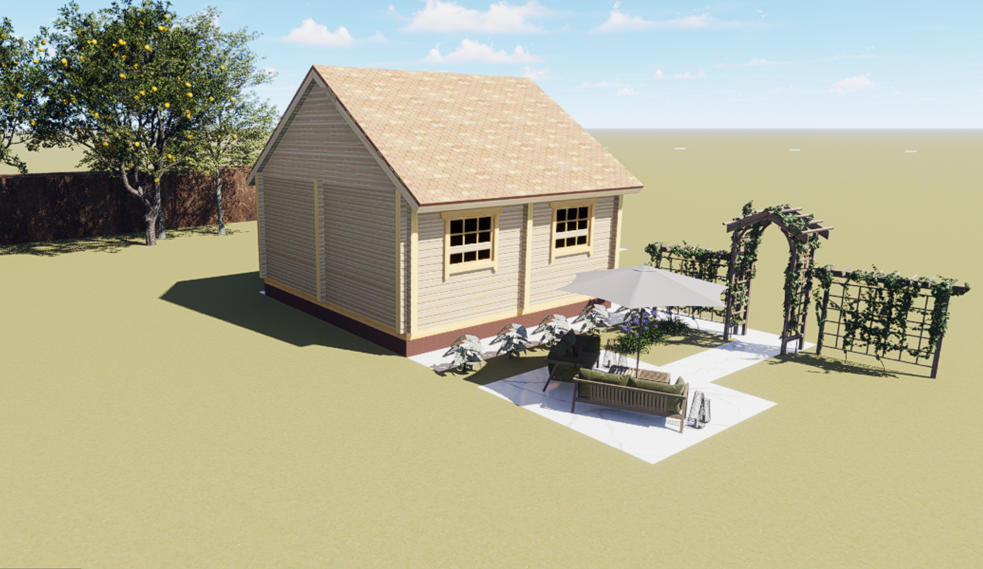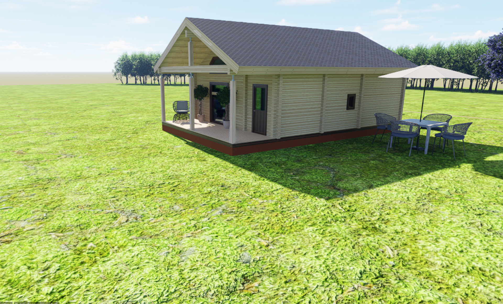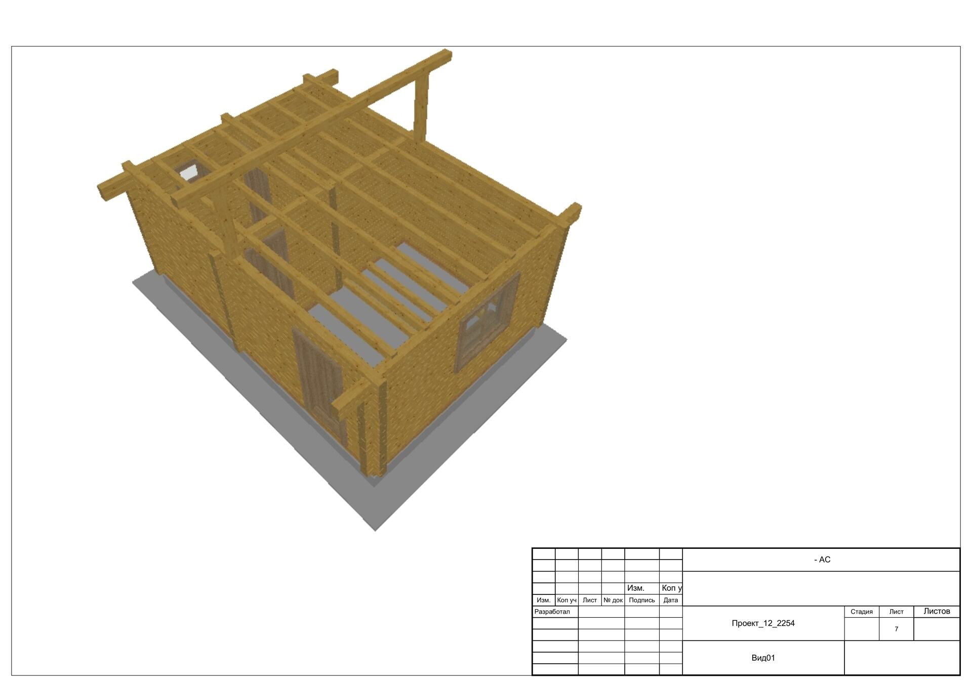 Стоимость в комплектации «под усадку»: обвязка, лаги пола, балки потолка, стропила, обрешётка, металлочерепица, крепёж, сборка.