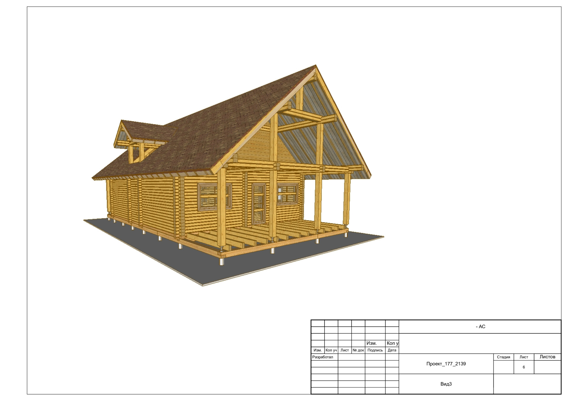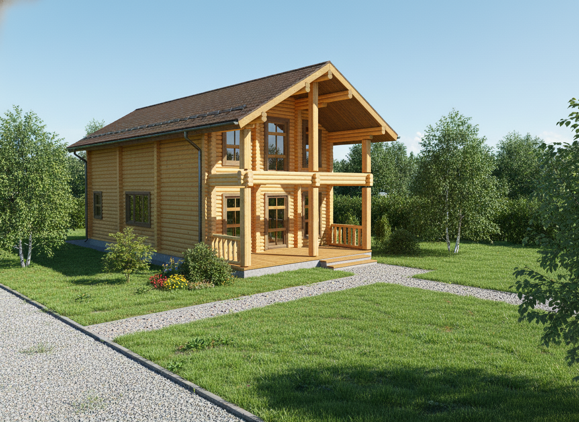 Дом 6х6 из профилированного бруса в чашку с террасой