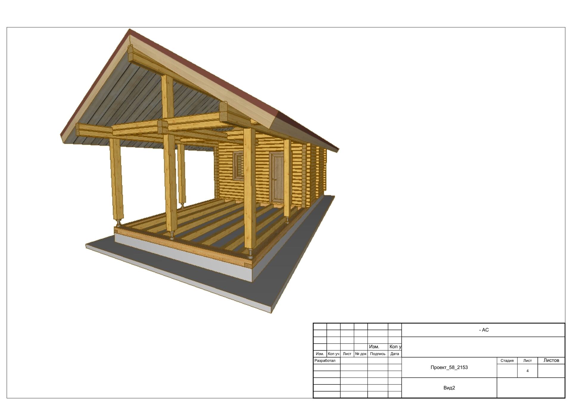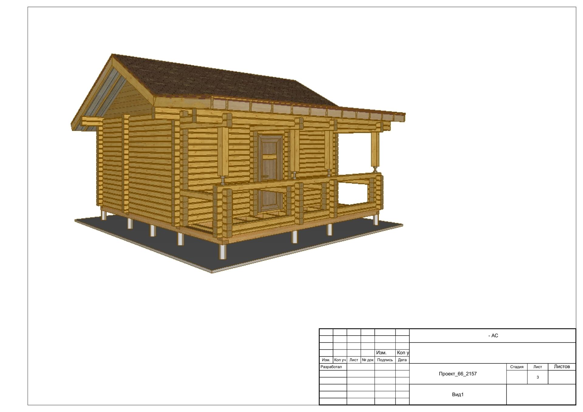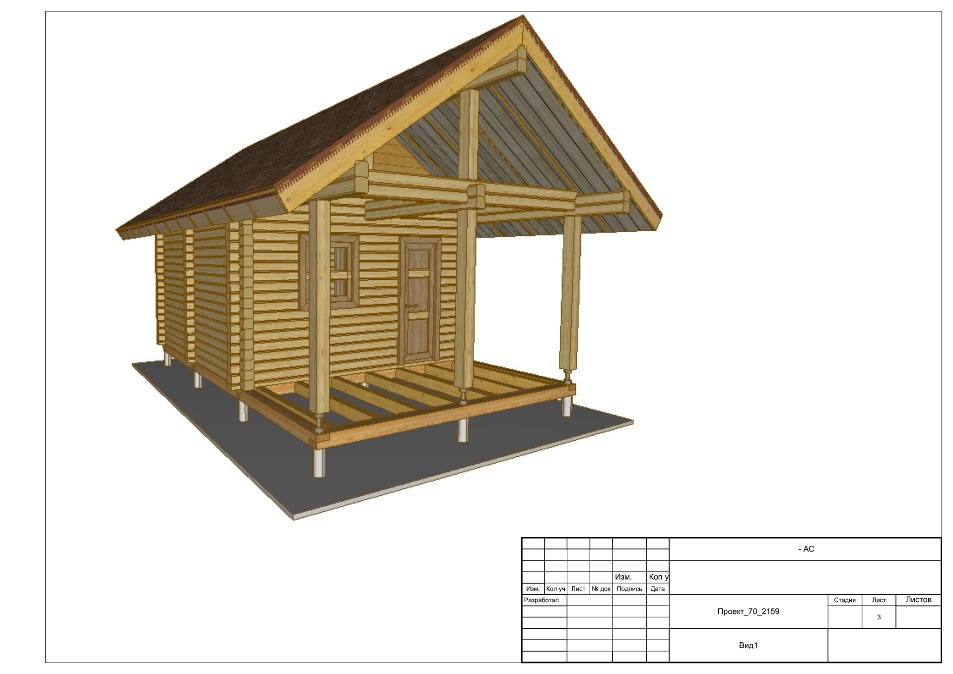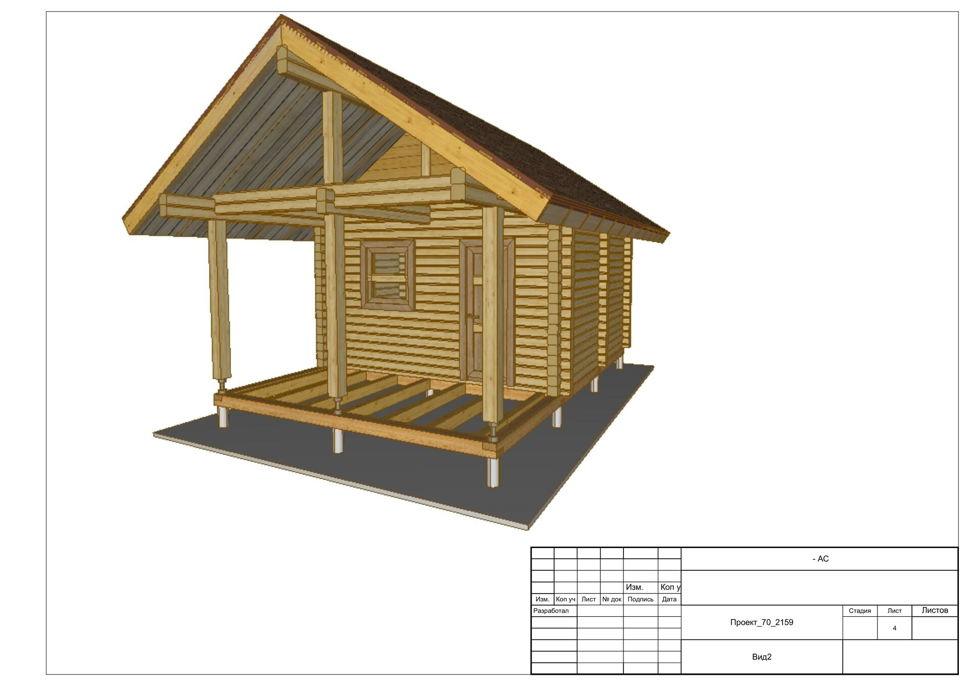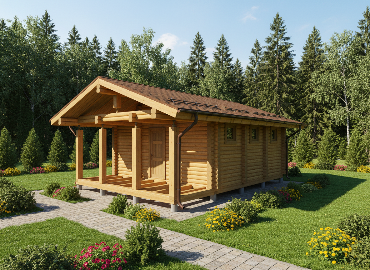 Баня 3,9х5,6 с верандой из профилированного бруса в чашку
