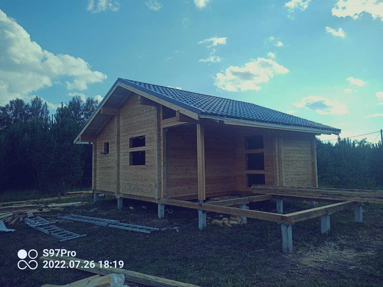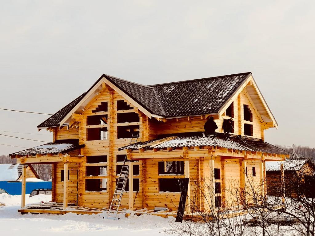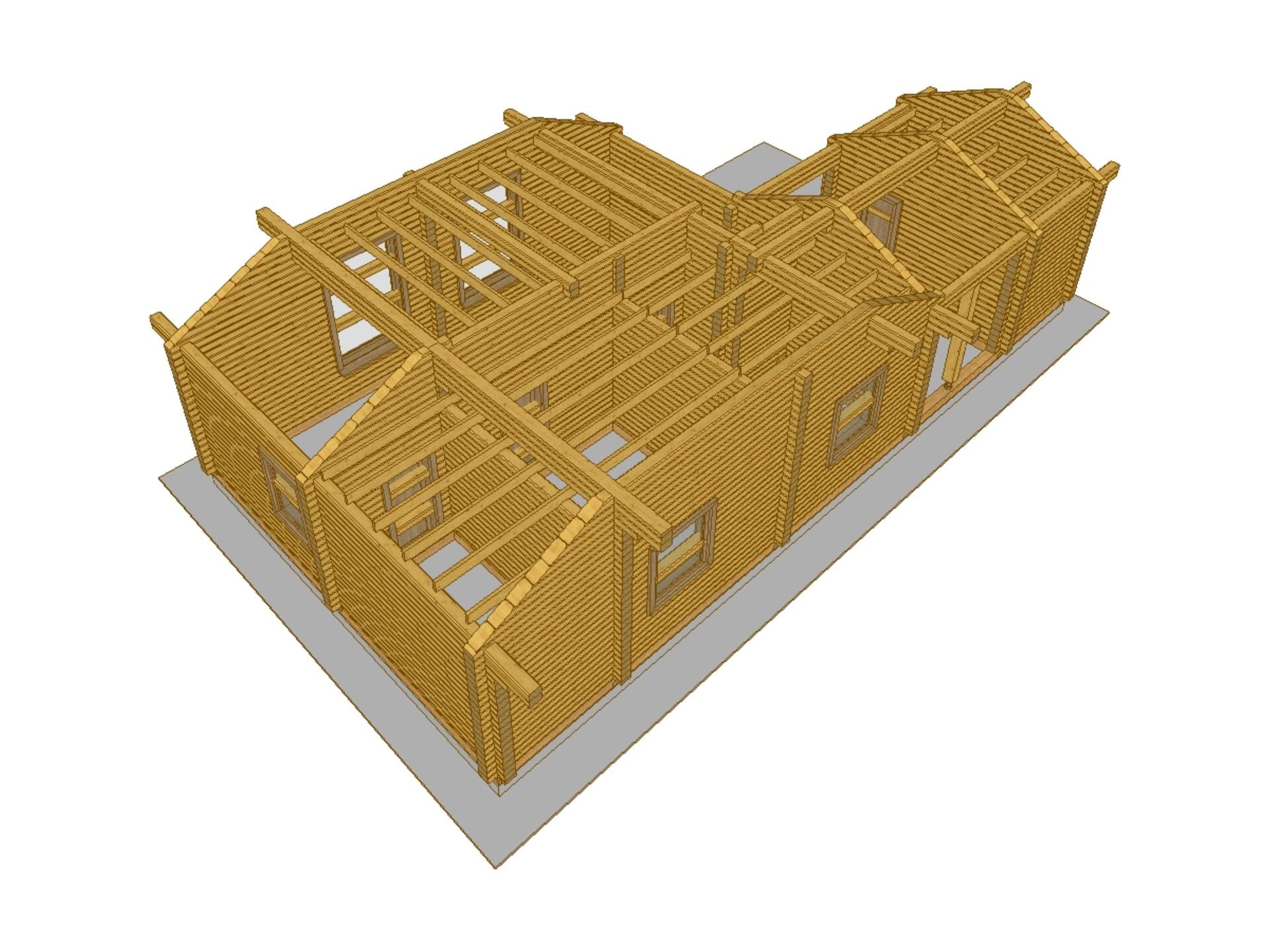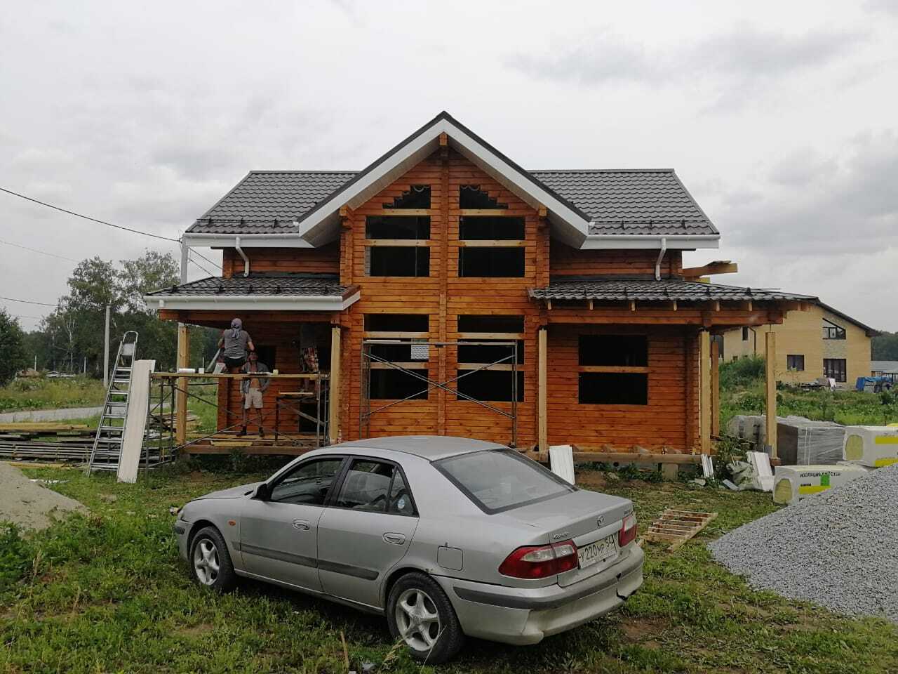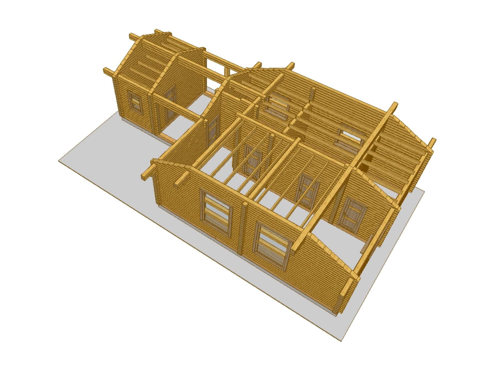 Стоимость в комплектации «под усадку»: обвязка, лаги пола, балки потолка, стропила, обрешётка, металлочерепица, крепёж, сборка- рассчитывается индивидуально