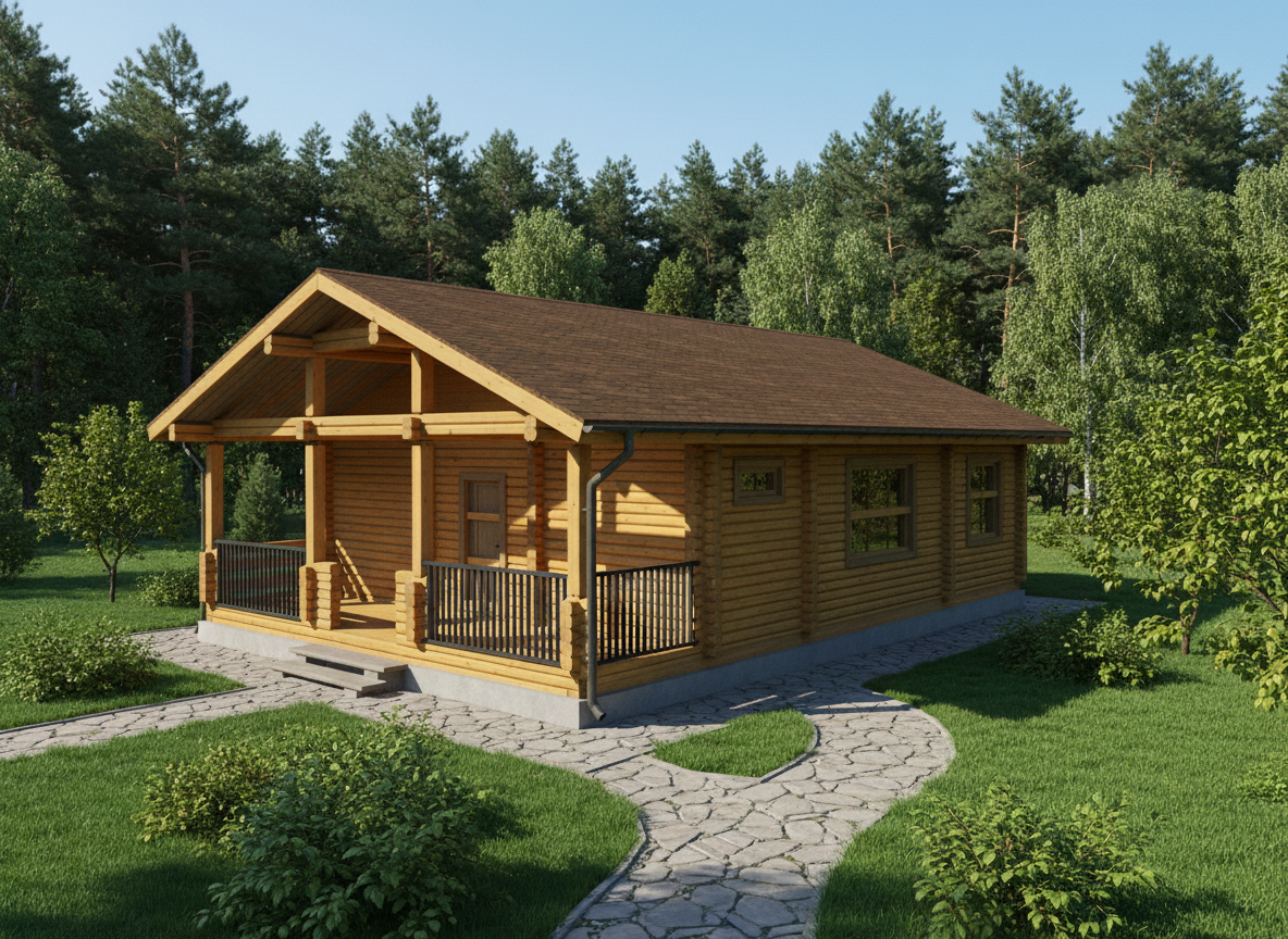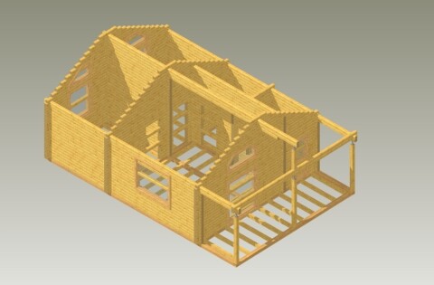 Дом 6,5х8 с верандой из профилированного бруса в чашку